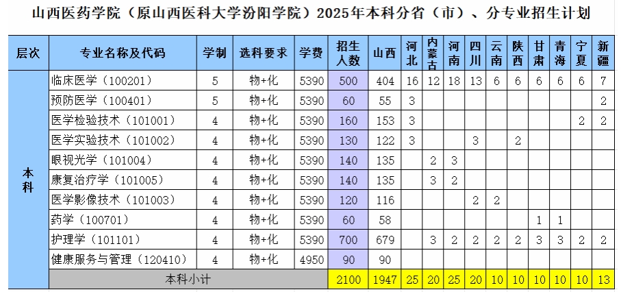 2025年共招生2100人。其中山西省内招生1947人。