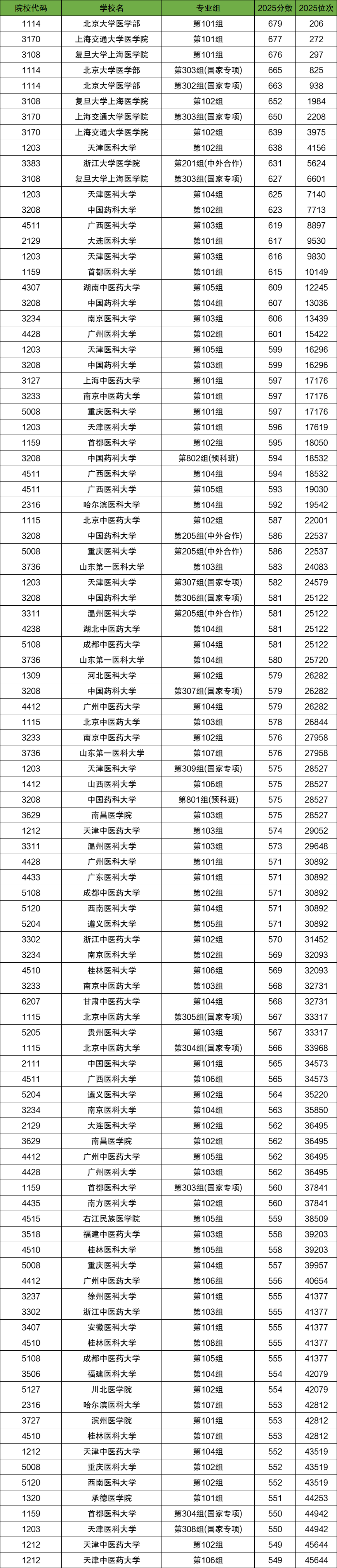 2025年医科大学录取分数线一览表