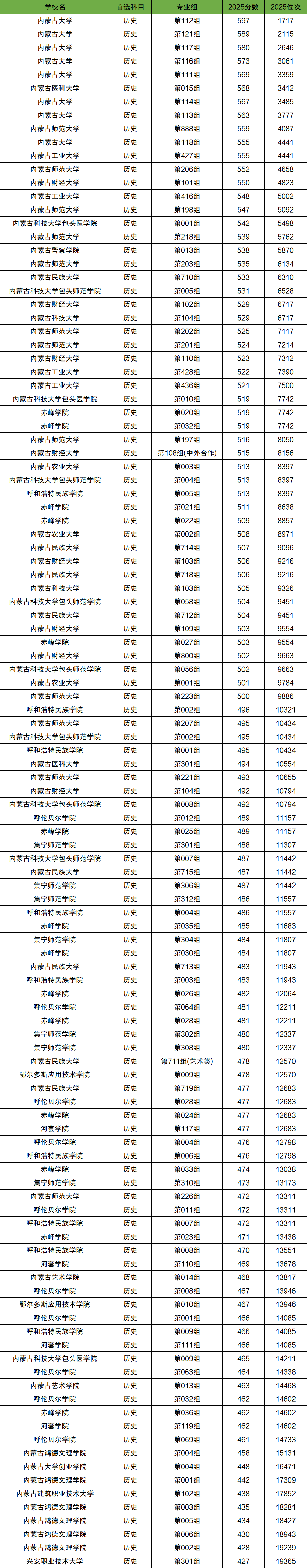 2025年内蒙古本科大学在内蒙古的录取分数线及位次是:历史类427分-597分,19365名-1717名;物理类375分-610分,68528名-4935名。