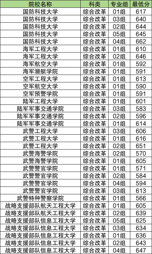 空军预警学院:最低分591分;