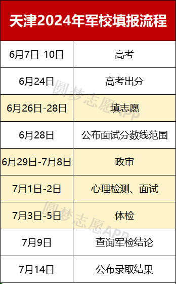 2025年天津军校报考流程主要包括填报志愿(6月26日-28日)、政审(6月9日-17日)、体检面试(7月1日-5日)等。想要报考军校需要满足年龄16到20岁、符合军队院校体检标准等条件。完整流程及时间安排表如下。