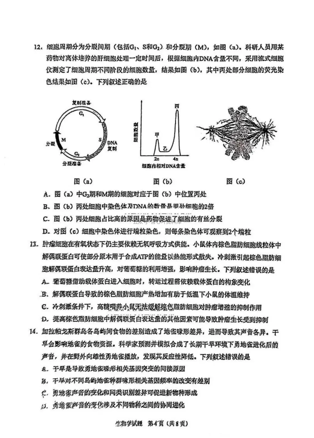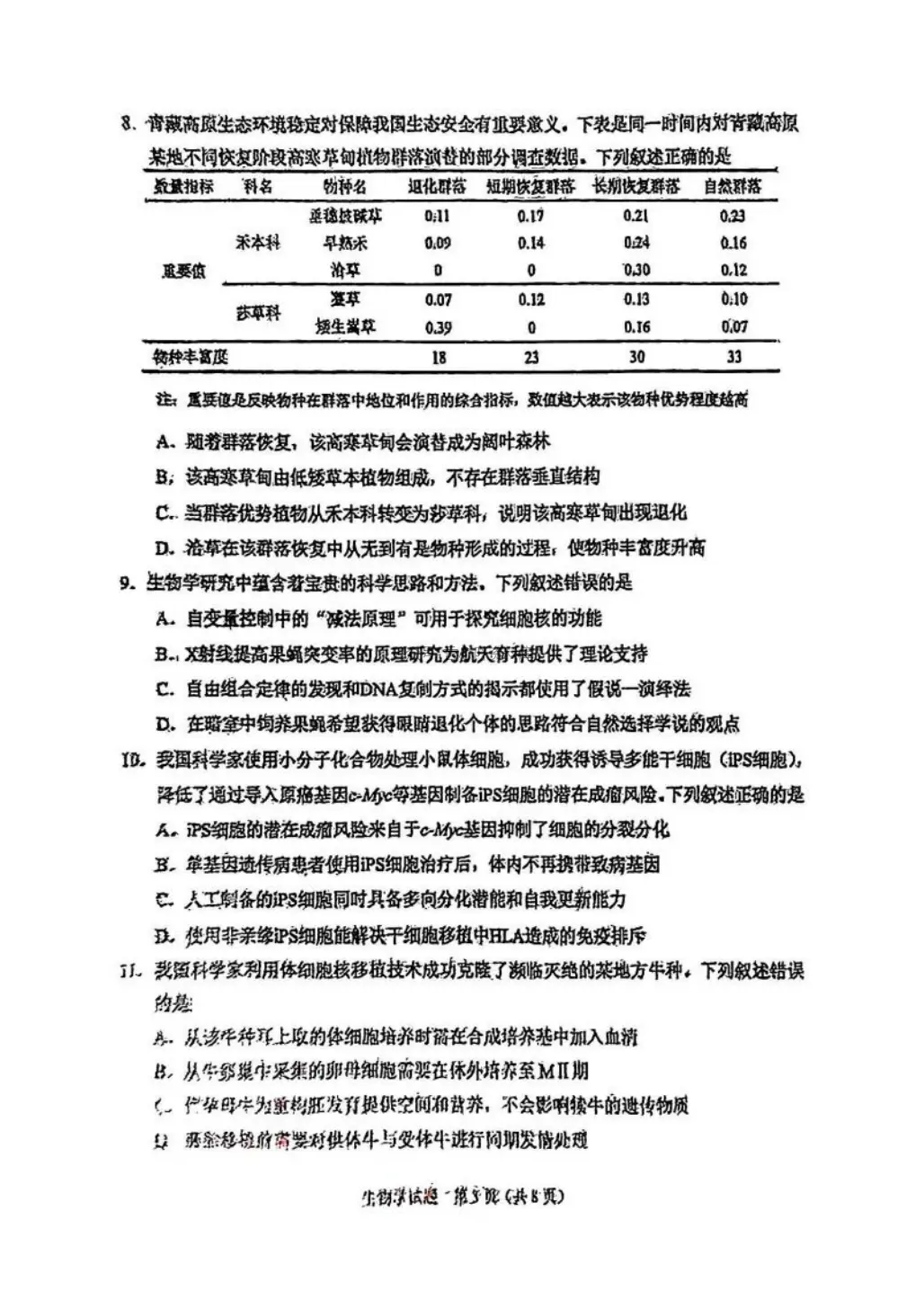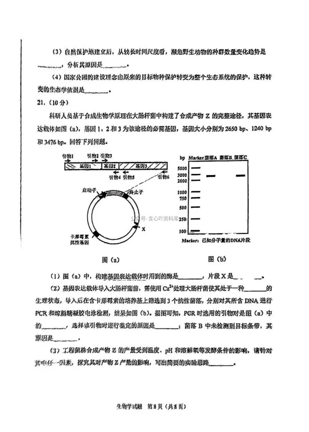 注意:因为本次新高考适应性考试物理、化学、历史、思想政治、生物、地理6门科目是由各省单独出题,所以各省除语数外科目以外,其余科目的试题都不一致,本文就只整理出山西生物具体的试卷及答案,仅供山西考生参考。
