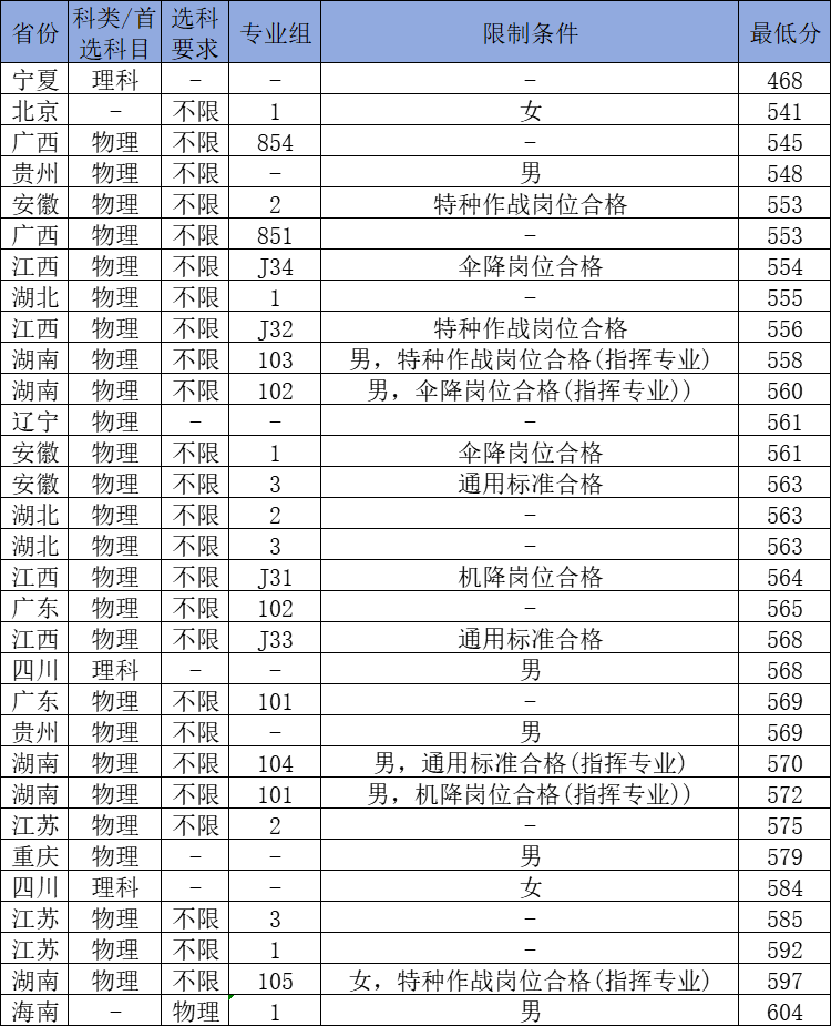 (1)男性身高162cm以上,女性身高158cm以上。特战类岗位及伞降、机降岗位:男性身高168cm以上,女性身高165cm以上。