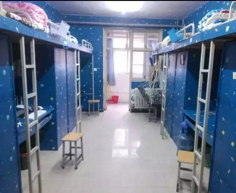 新校区:男生女生都是上床下桌,六人宿舍,都有空调,宿舍10号楼11号楼有独卫有阳台