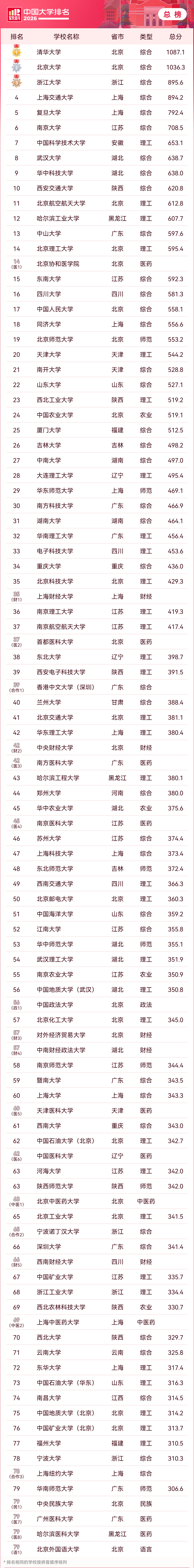 下面就附上2026全国985大学最新排名一览表: