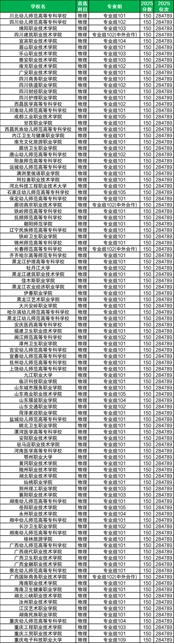 由于文章篇幅限制,本位仅为各位整理出2025年四川物理类录取分最低的100所专科学校录取分数线。
