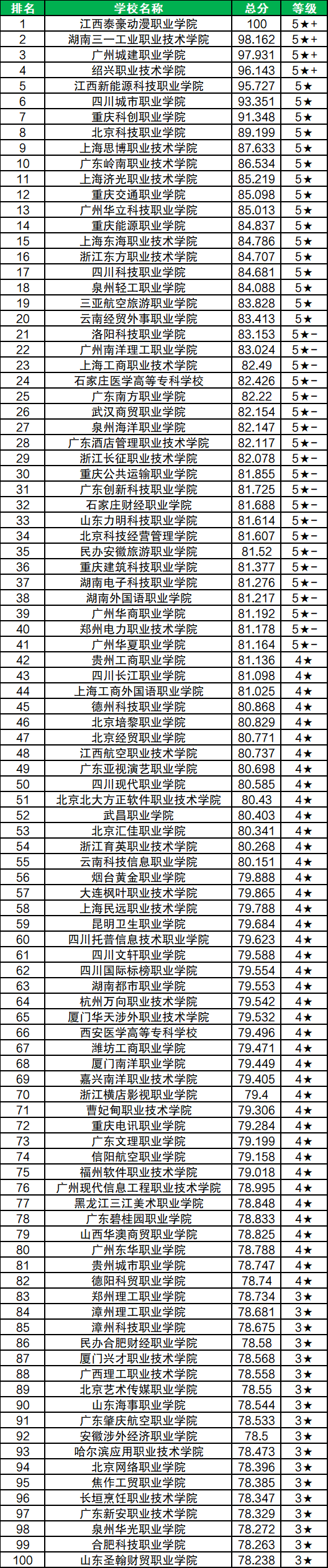 民办大专排名前十学校依次是江西泰豪动漫职业学院、湖南三一工业职业技术学院、广州城建职业学院、绍兴职业技术学院、江西新能源科技职业学院、四川城市职业学院、重庆科创职业学院、北京科技职业学院、上海思博职业技术学院、广东岭南职业技术学院。
