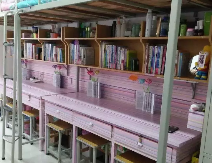 河南牧业经济学院宿舍分为六人间和八人间,宿舍大部分是6人间,六人间是一侧两张上下铺,另一侧是一个上下铺,一个长桌六个座位 。