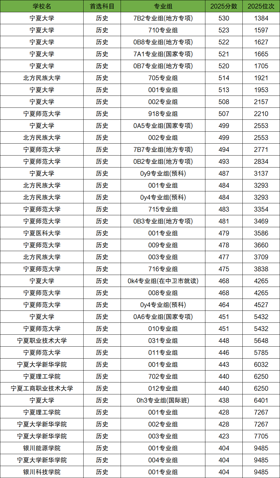 2025年宁夏本科大学在宁夏的录取分数线及位次是:历史类404分-530分,9485名-1384名;物理类372分-524分,30025名-4704名。
