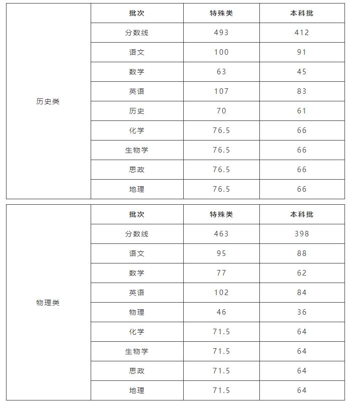 根据往年数据,考试会按照物理类、历史类划定特控线、本科线。