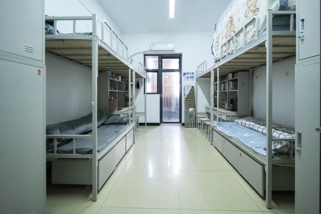 学校的住宿分为四个标准,乐园校区的住宿是大寝室,8-10人一间,公共卫生间。北校区分为:男生一栋四人间,公共卫生间。男生2栋四人间,两个寝室公用一个卫生间。其余3、4、5、6、7栋四人间,每间都有独立的卫生间。每个寝室都配有衣柜,书桌,书架,电话。都有阳台。南苑一栋不是独卫,其余都是独卫。北苑有空调。