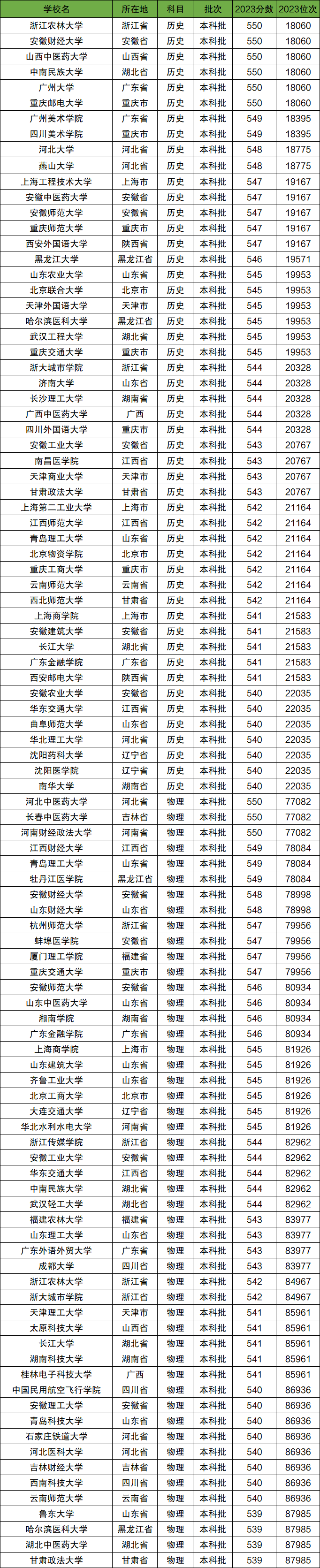 (省内在历史类500-550分招生的大学共计37所,本文篇幅有限,只列举10所大学。)