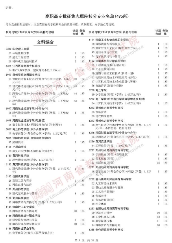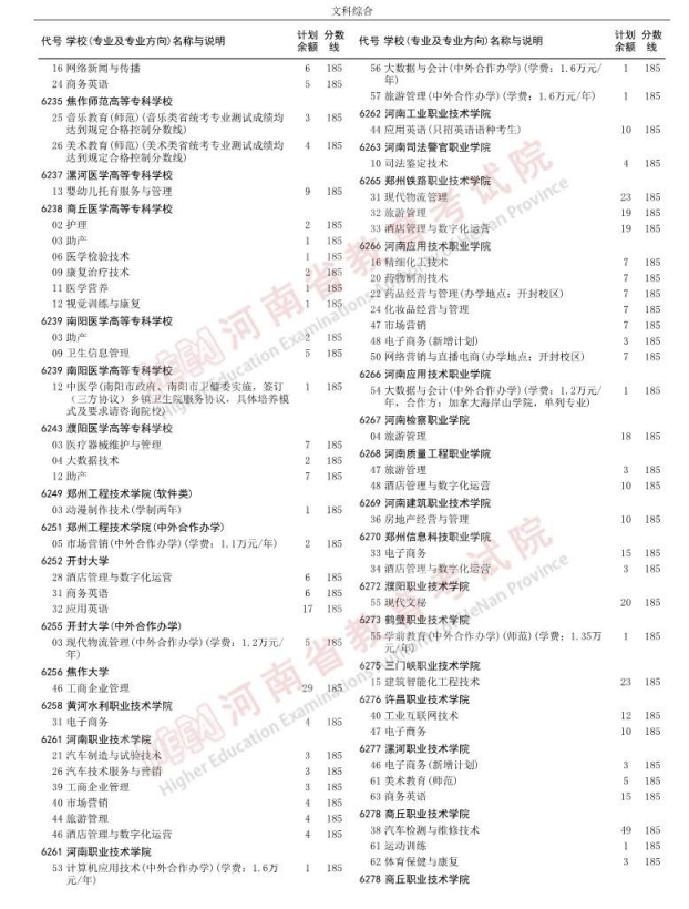 二、2024河南专科征集补录学校有哪些?