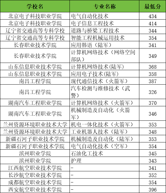 | 山东信息职业技术学院 | 应用电子技术(陆军) | 364 |