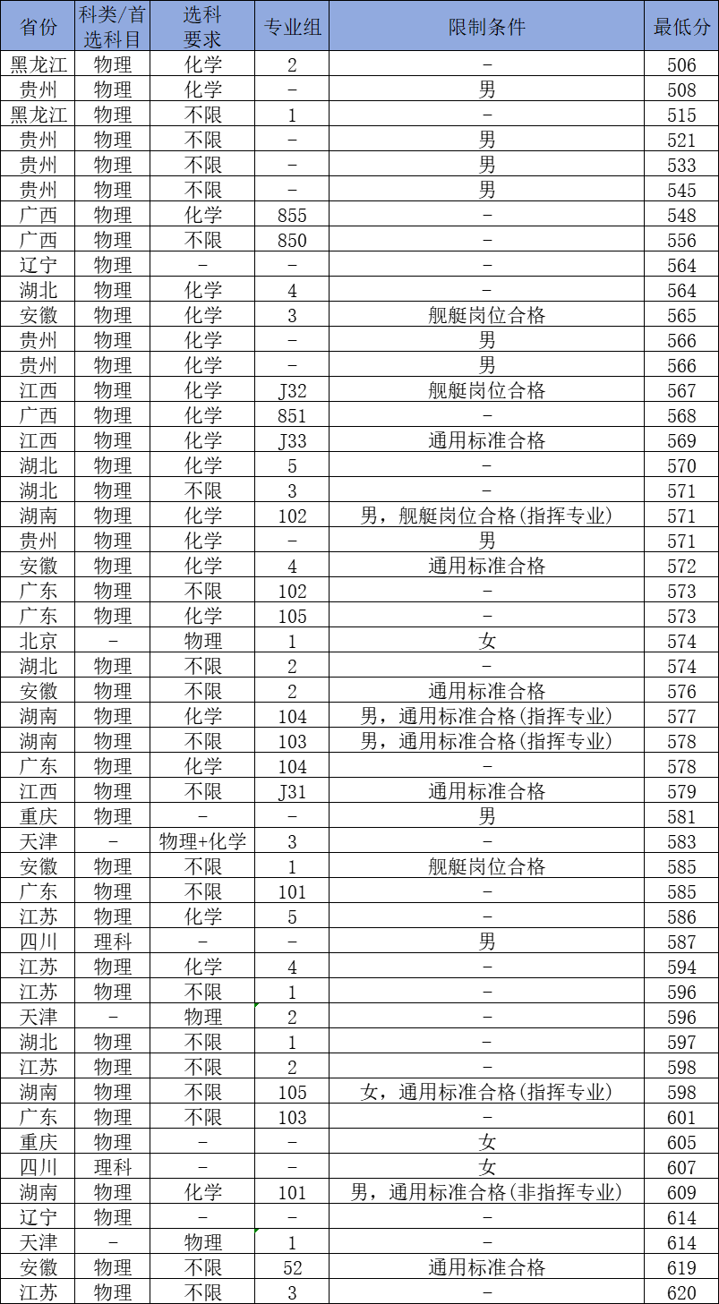 理科/物理类分数范围为506-620分,省内考生想要报考该校,分数至少要超特控线20分,即583分。