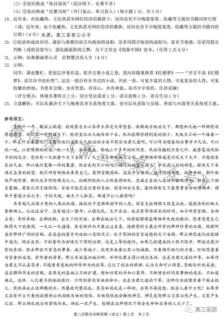 2023重庆二诊考试将于2023年4月13日进行考试,考试结束后本文将更新重庆市2023届高三第二次联合诊断性检测语文答案及试卷,下文为小编为大家收集整理的2023重庆二诊康德卷语文试卷及答案,供大家参考。