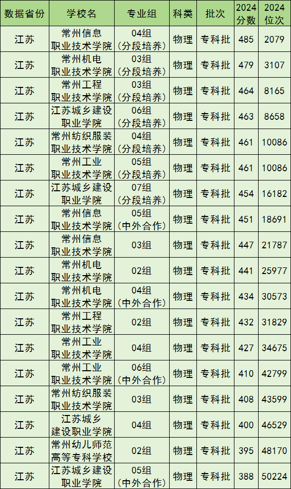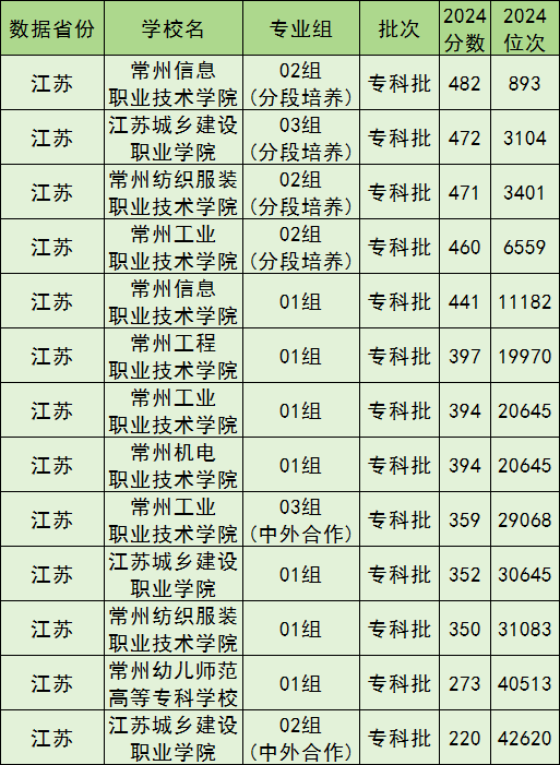 按照常州市所有公办大专院校2024年在江苏省内录取分数线高低排名,为大家整理以下内容。