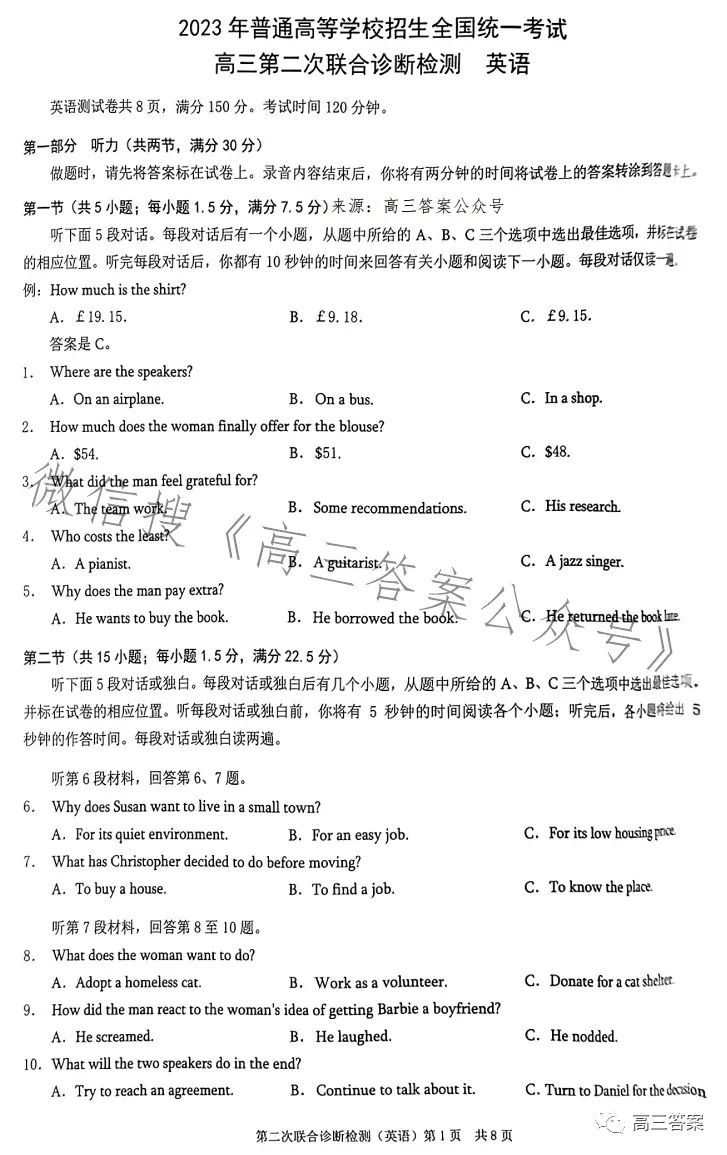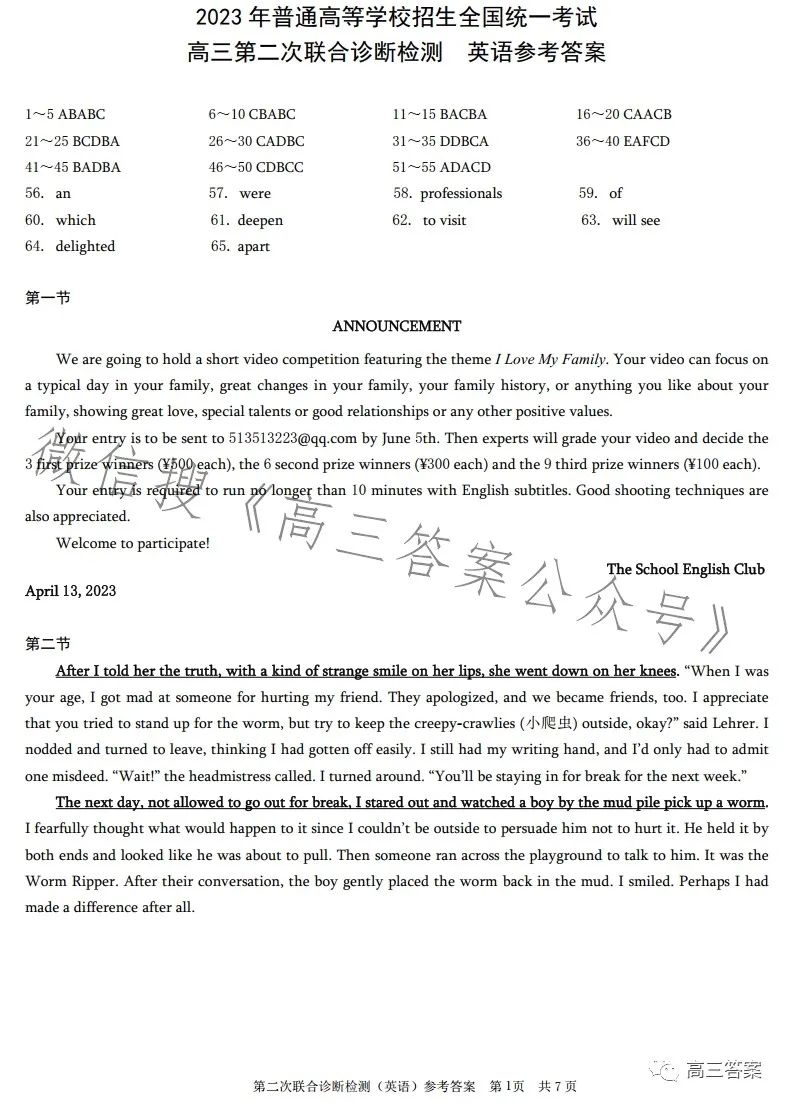 2023重庆二诊考试将于2023年4月13日进行考试,考试结束后本文将更新重庆市2023届高三第二次联合诊断性检测英语答案及试卷,下文为小编为大家收集整理的2023重庆二诊康德卷英语试卷及答案,供大家参考。
