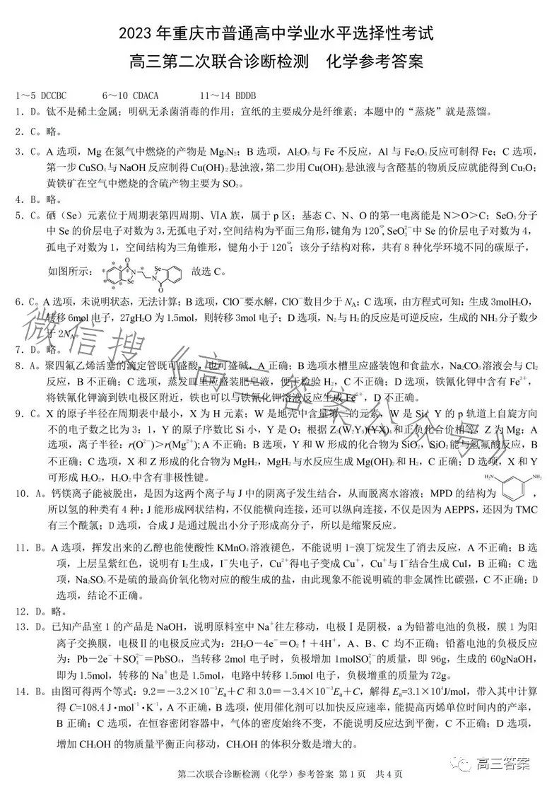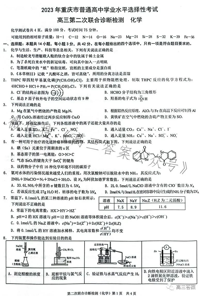 2023重庆二诊考试将于2023年4月13日进行考试,考试结束后本文将更新重庆市2023届高三第二次联合诊断性检测化学答案及试卷,下文为小编为大家收集整理的2023重庆二诊康德卷化学试卷及答案,供大家参考。