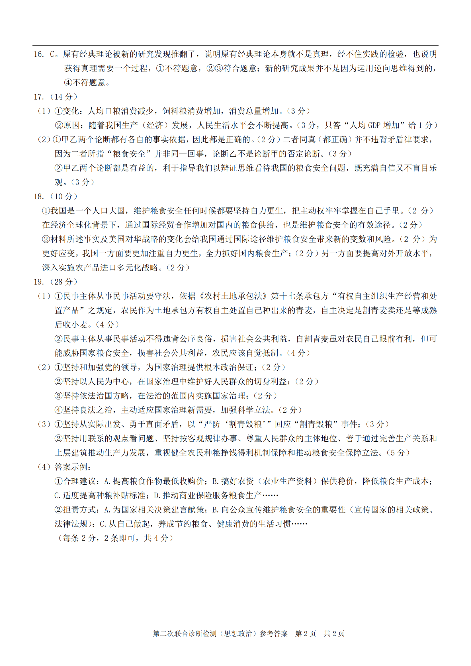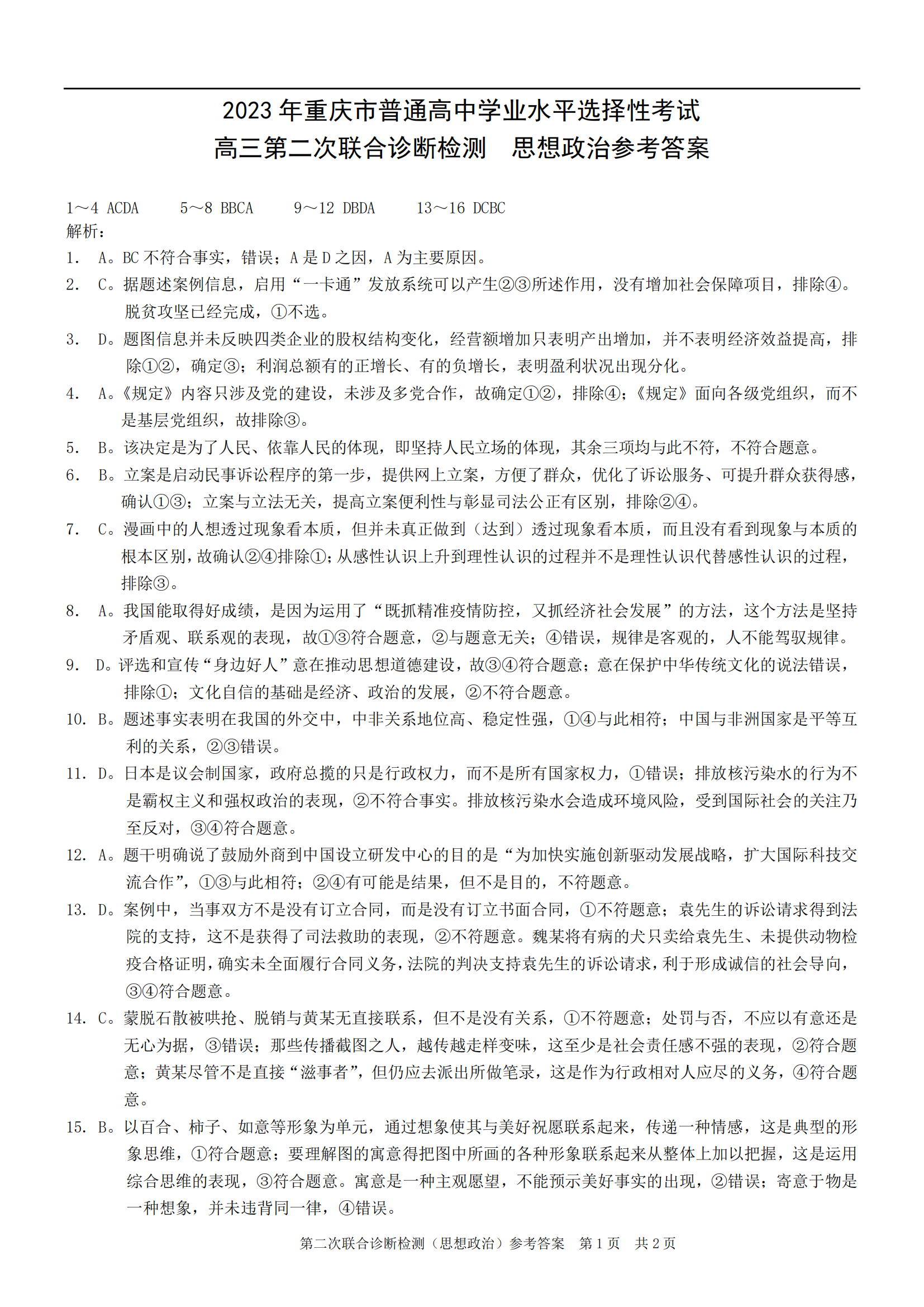 二、2023重庆二诊政治答案解析