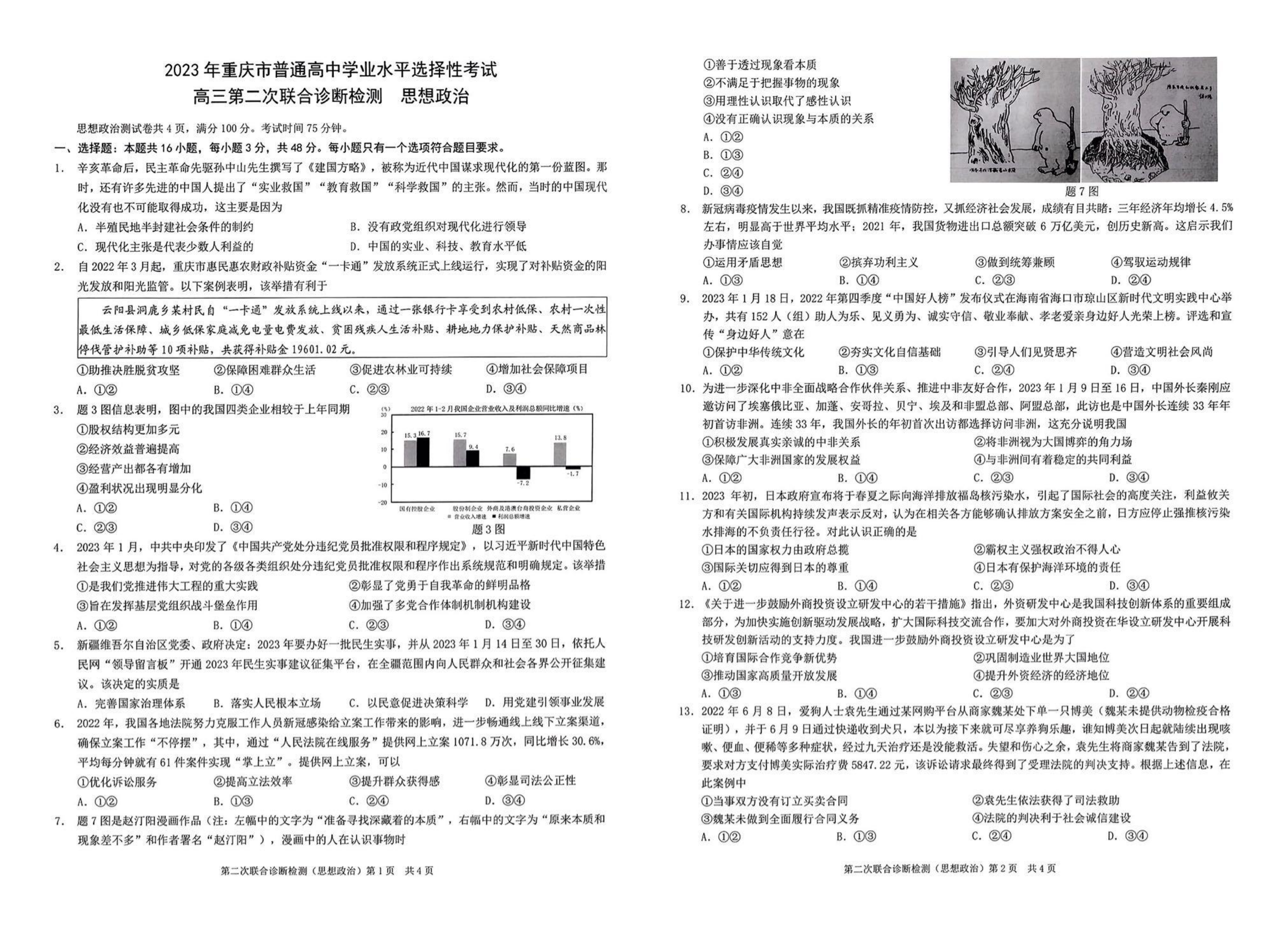 一、2023重庆二诊政治试卷
