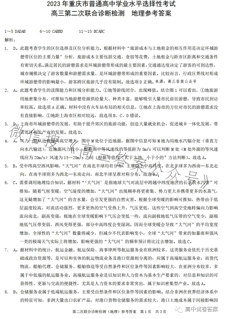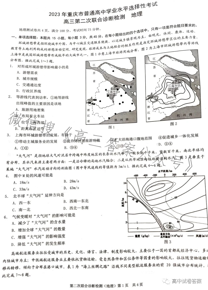 2023重庆二诊考试将于2023年4月7日进行考试,考试结束后本文将更新重庆市2023届高三第二次联合诊断性检测地理答案及试卷,下文为小编为大家收集整理的2023重庆二诊康德卷地理试卷及答案,供大家参考。