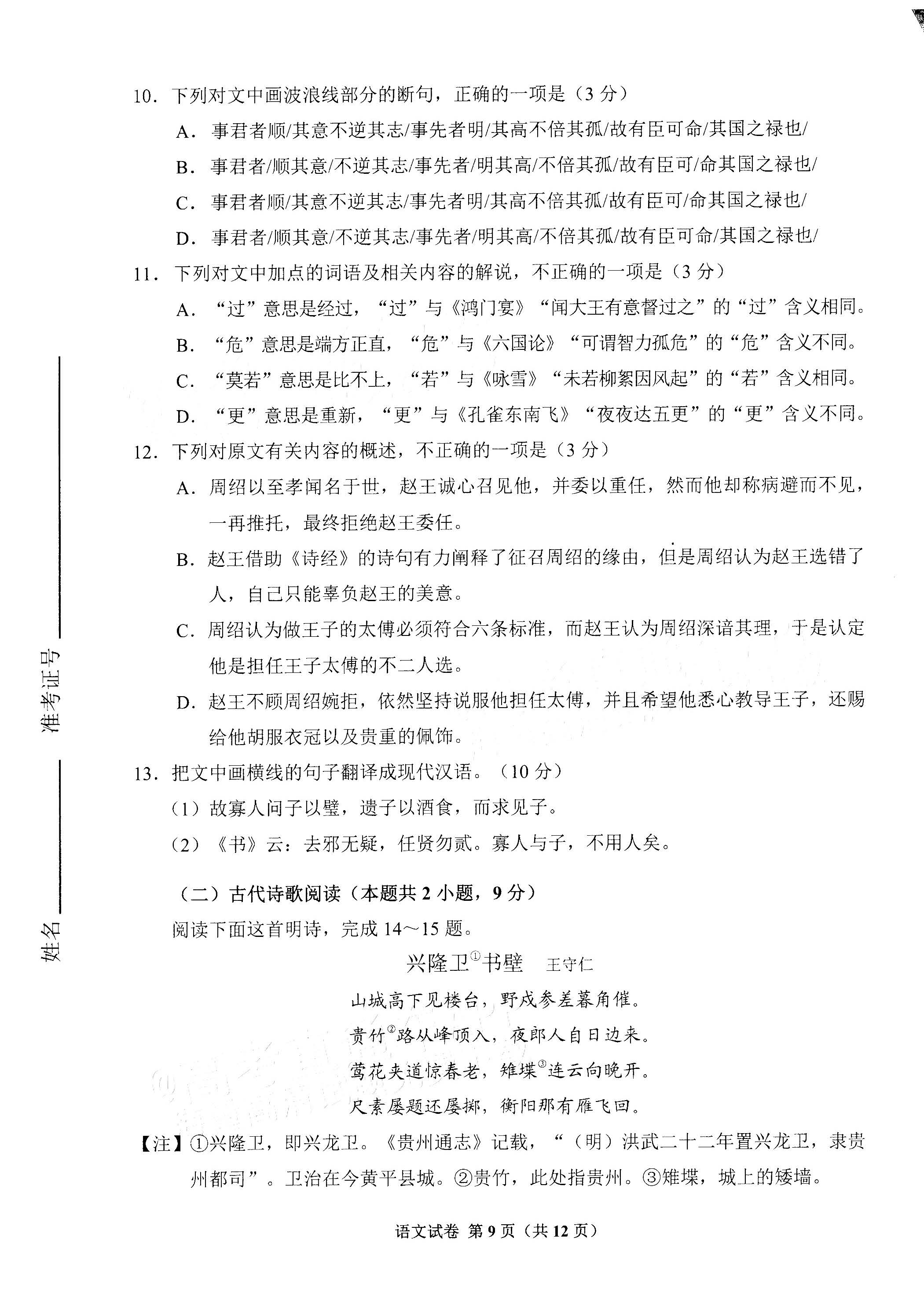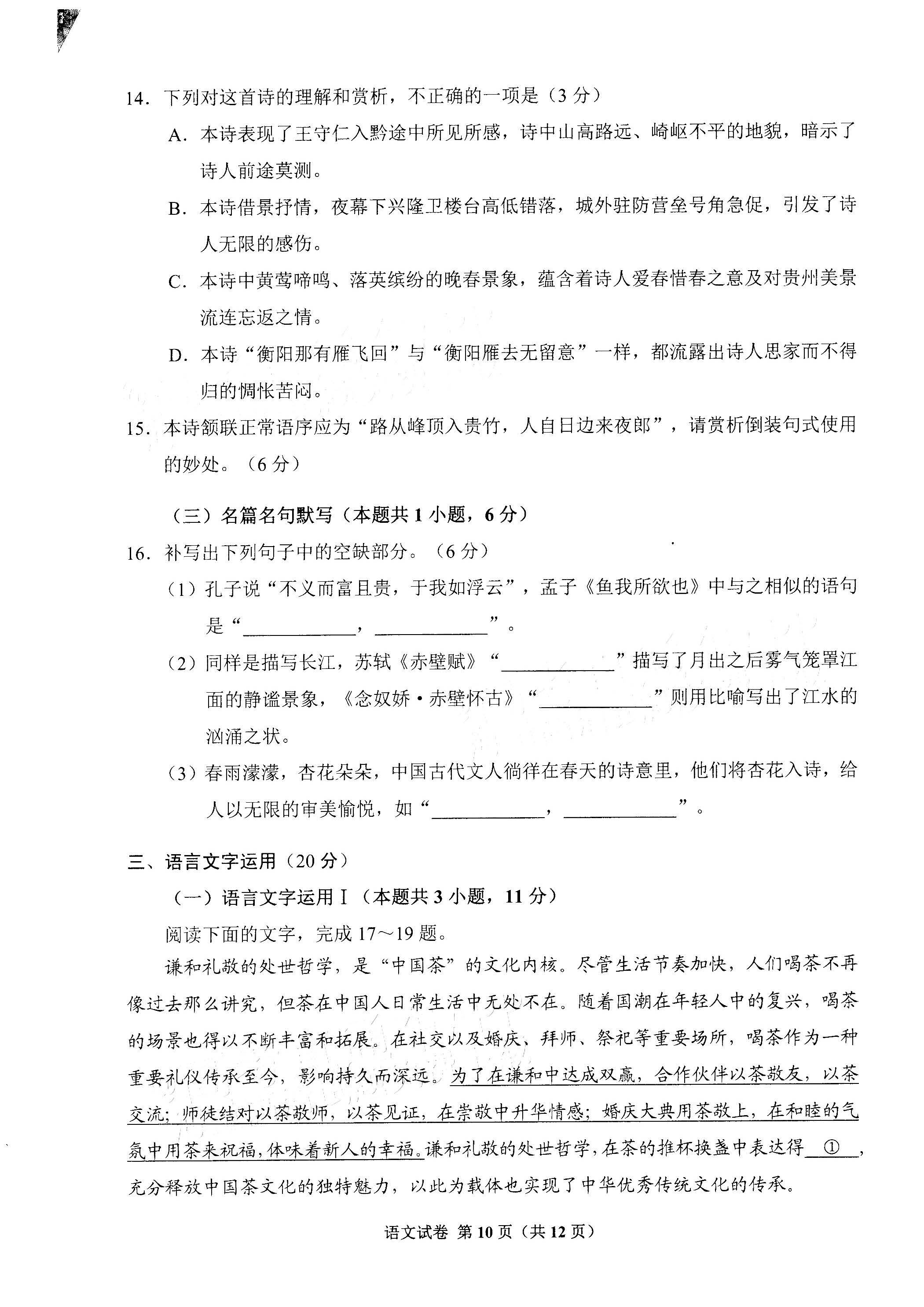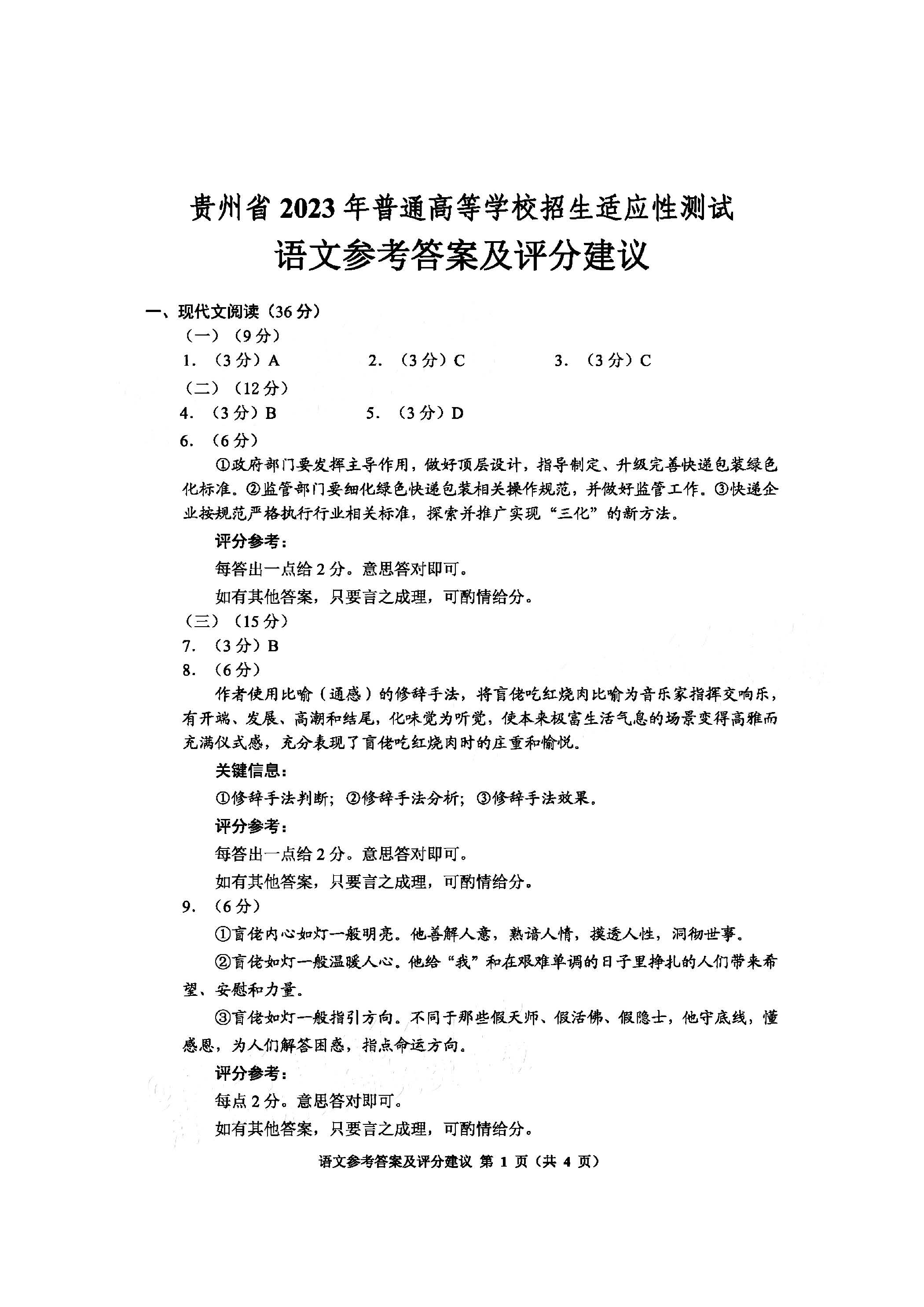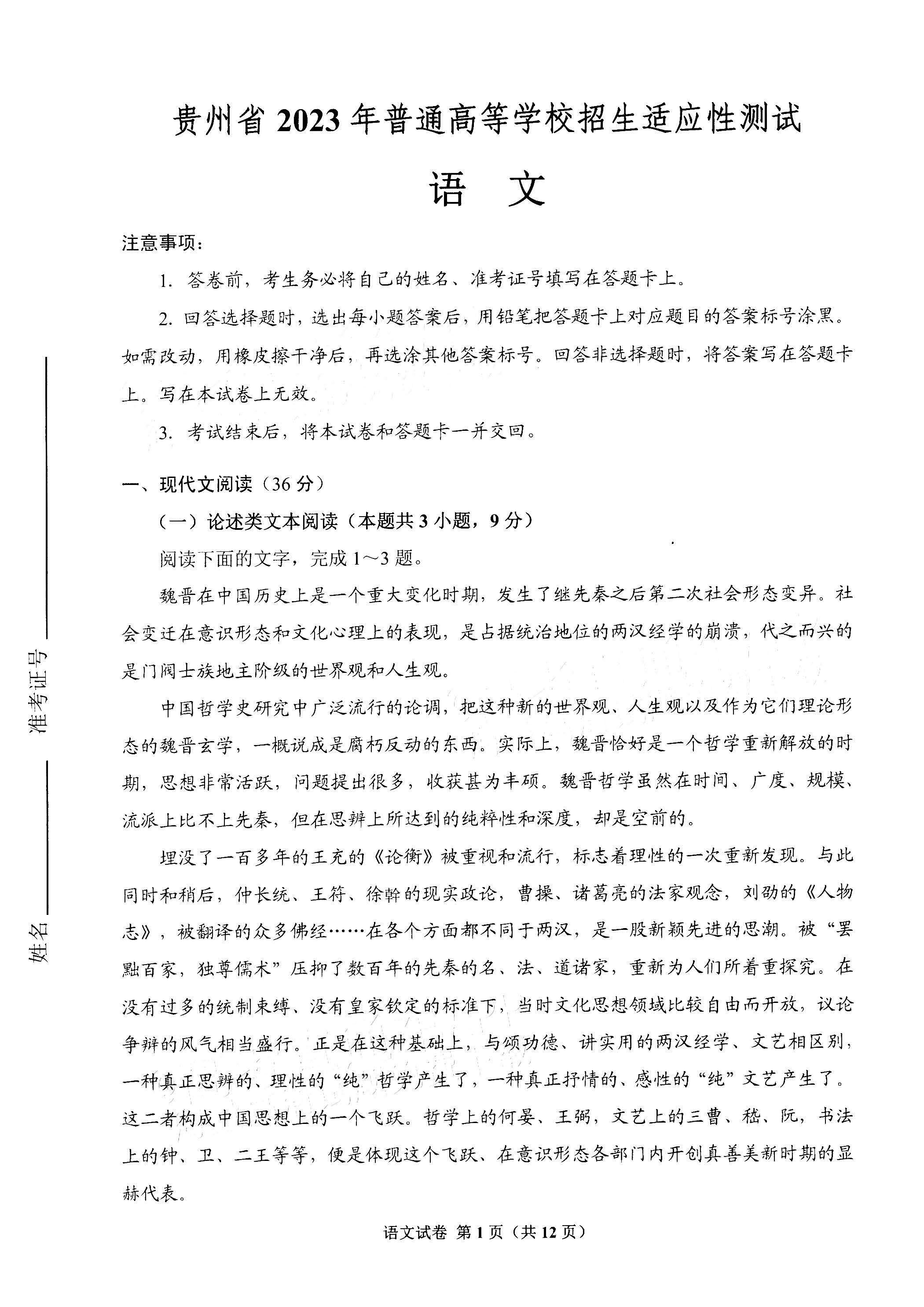 2023贵州一模考试将于2023年4月8日开考,考试结束后本文将更新2023贵州省高考适应性考试语文答案及试卷,下文为小编搜集整理的2023贵州一模语文试题及参考答案,此外本文还将为大家附上2023贵州省高考适应性考试全科答案及试卷。