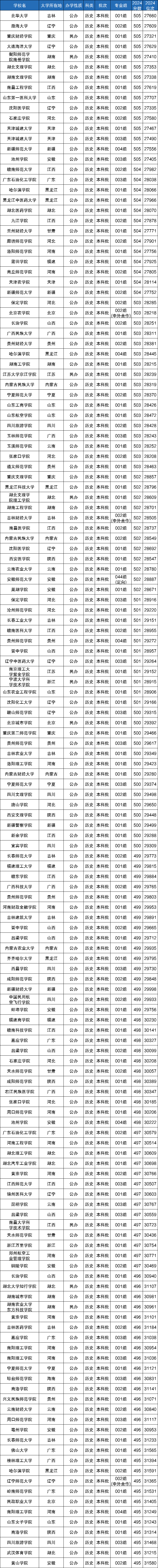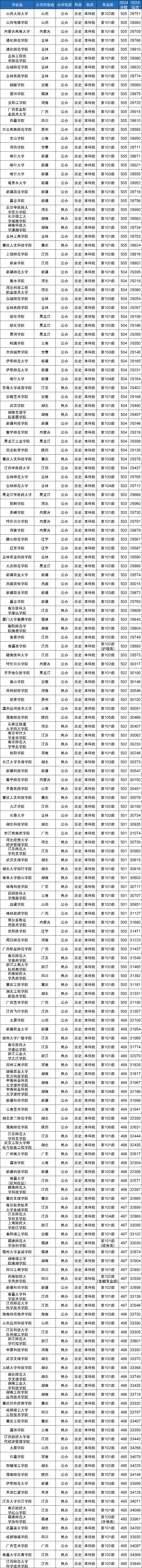2024年甘肃省的500分左右(495-505分)能上的本科大学一共有189所,均为本科批C段录取的院校。