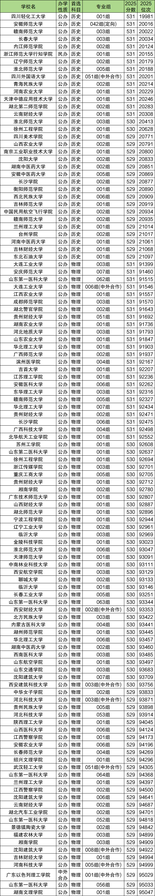 下面是2025年四川530分左右的大学名单排名一览表,可查看: