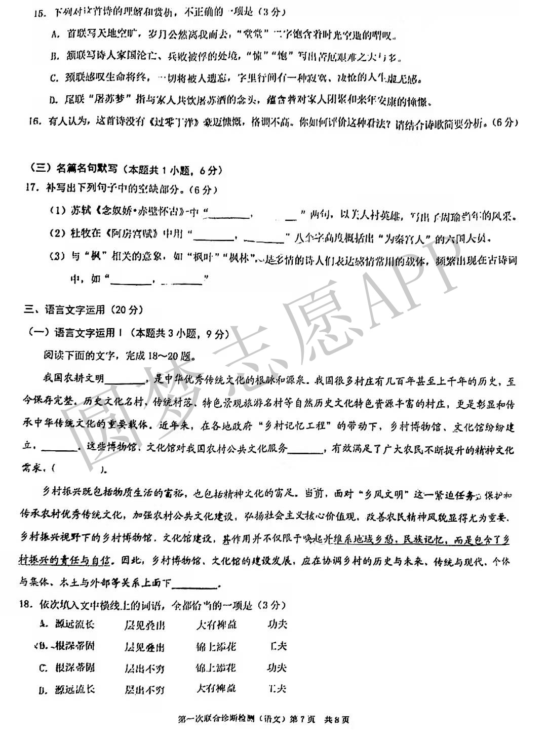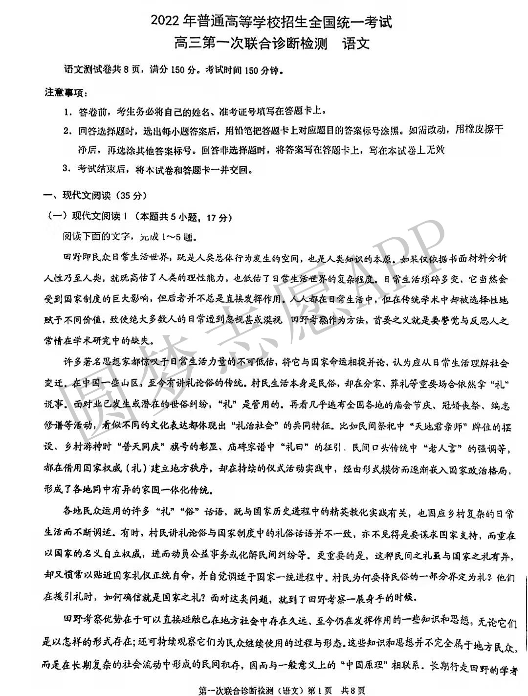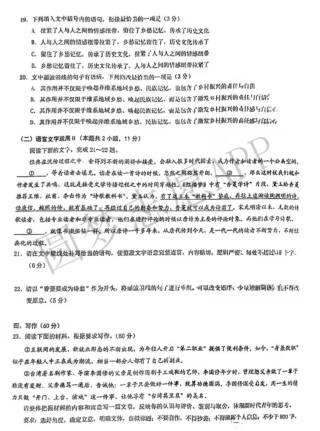 Ⅰ.语文试卷