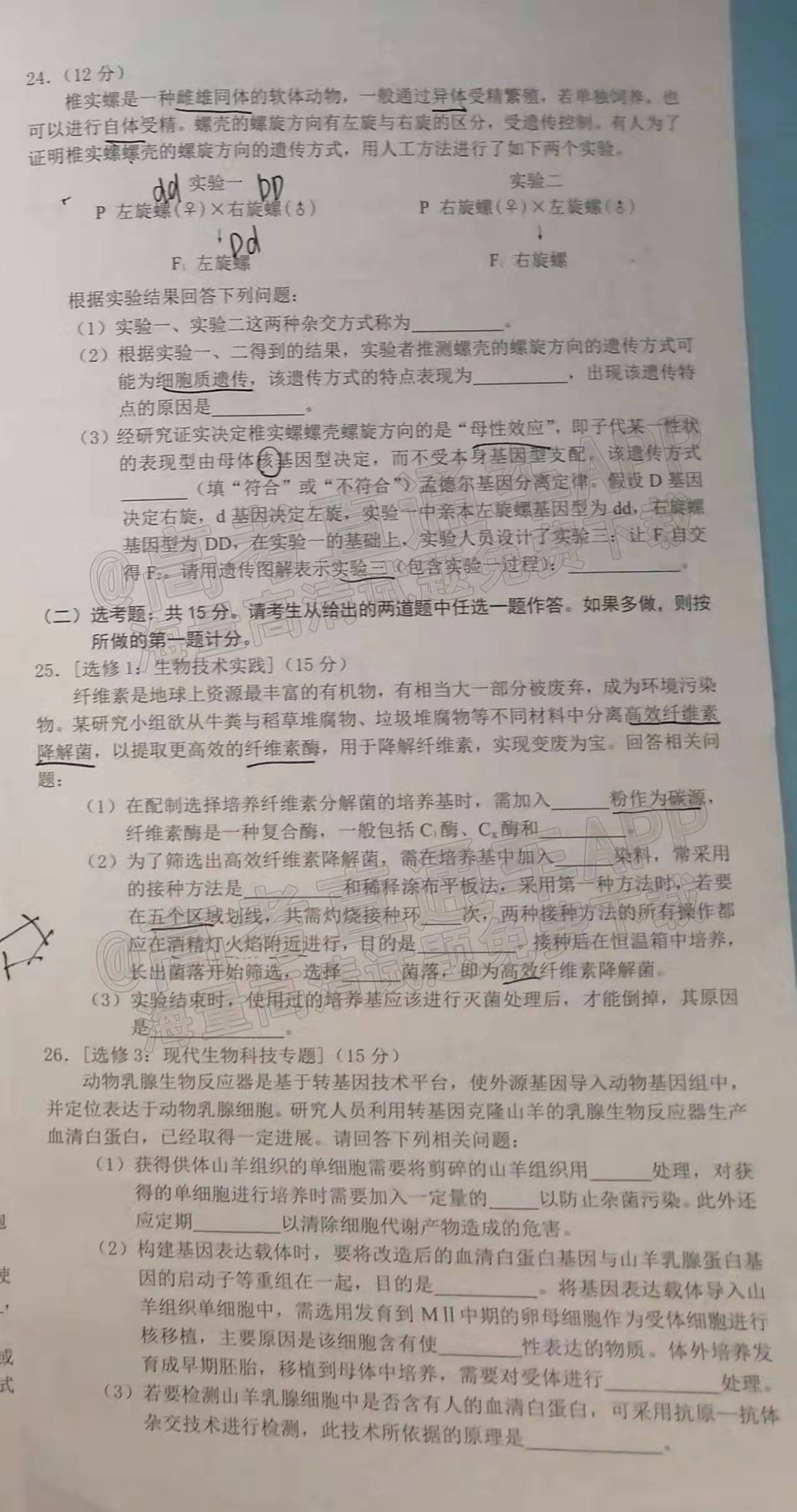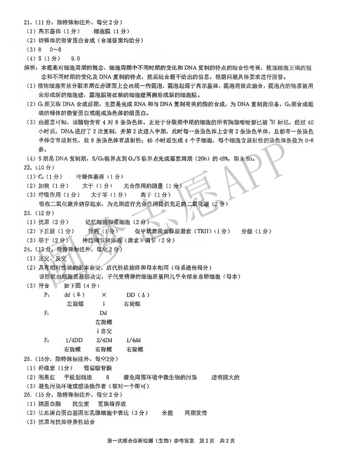 Ⅱ.生物答案
