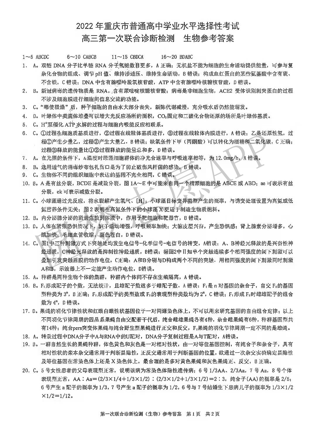 ⑥2022重庆康德卷一诊生物