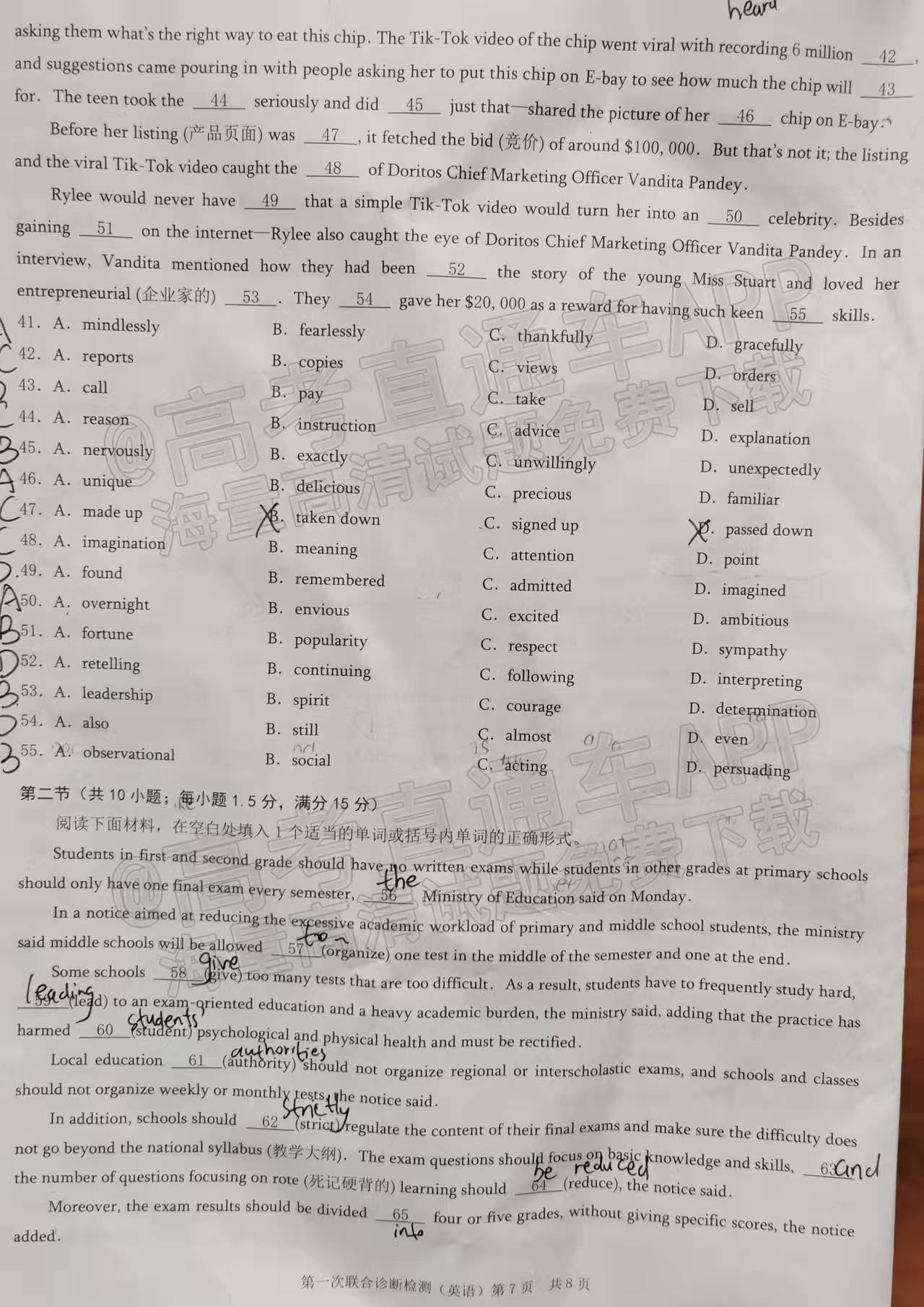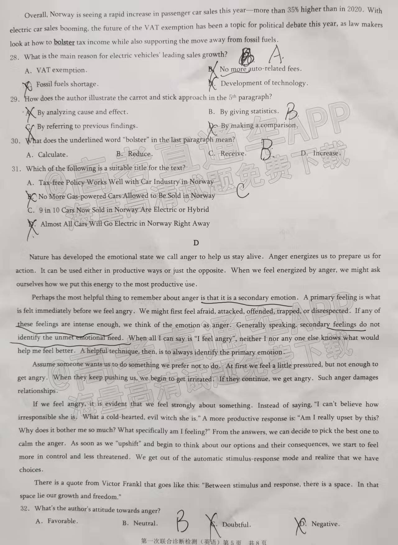 小编会持续更新文章直至所以科的试卷和答案更新完成。