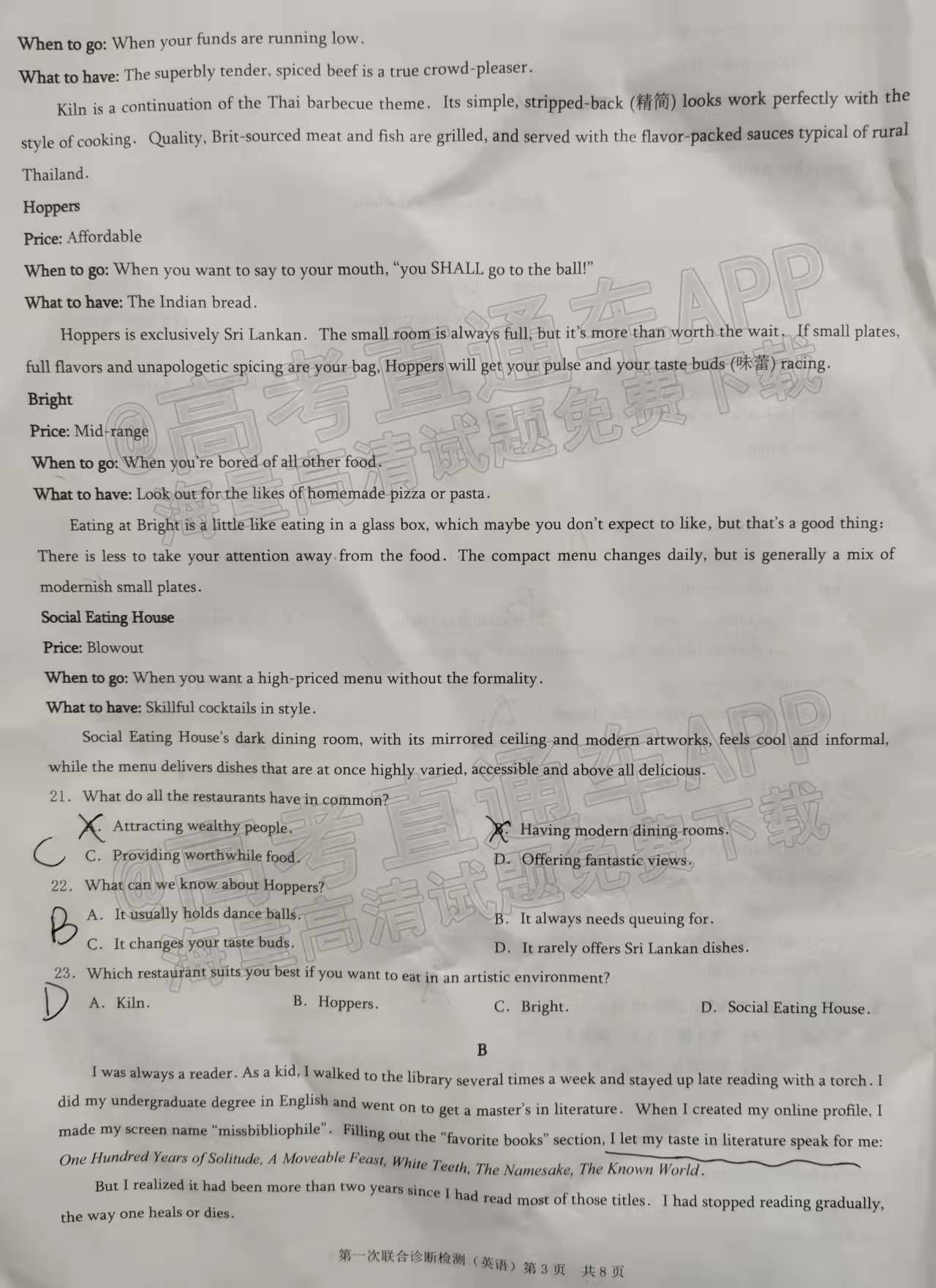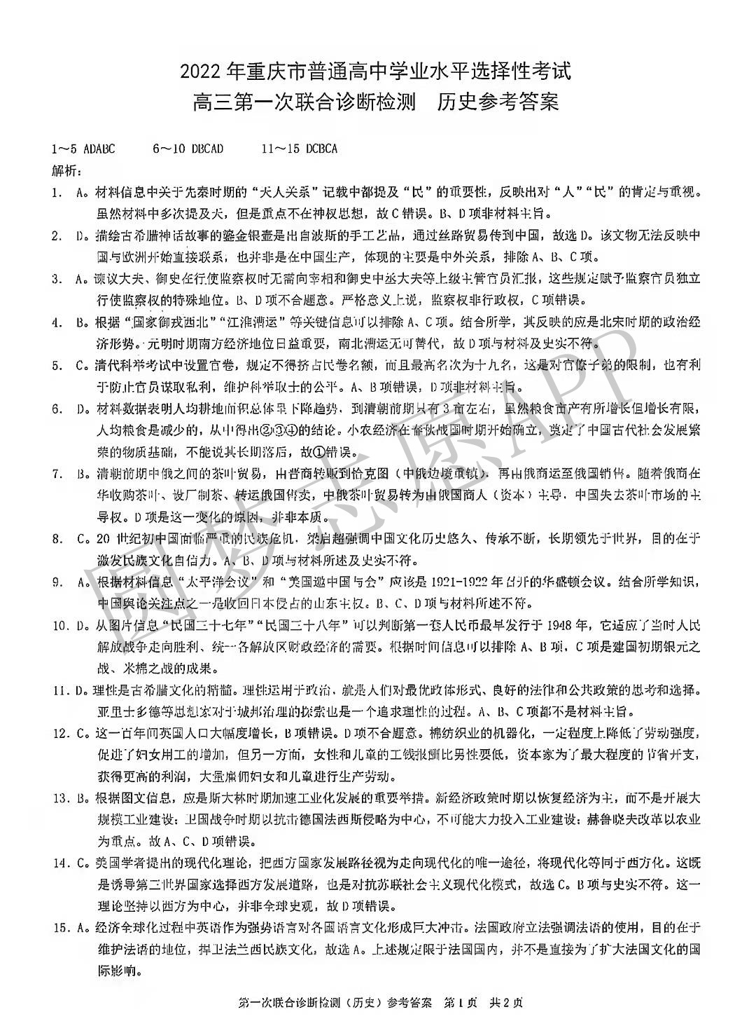 ⑧2022重庆康德卷一诊政治(待更新)