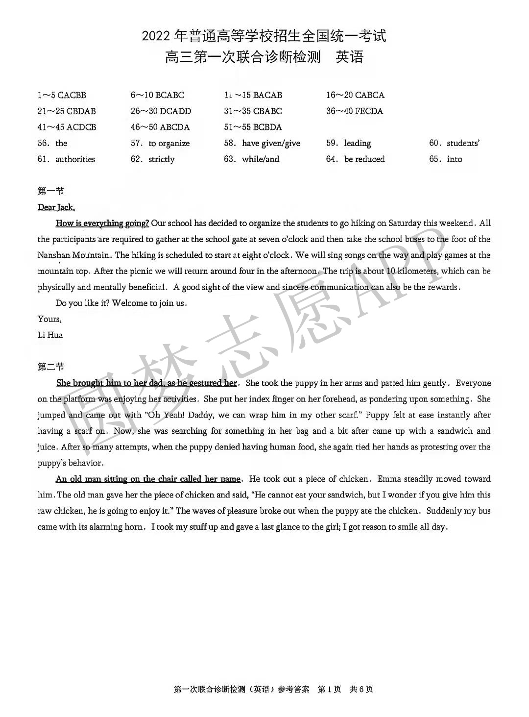 Ⅱ.英语答案