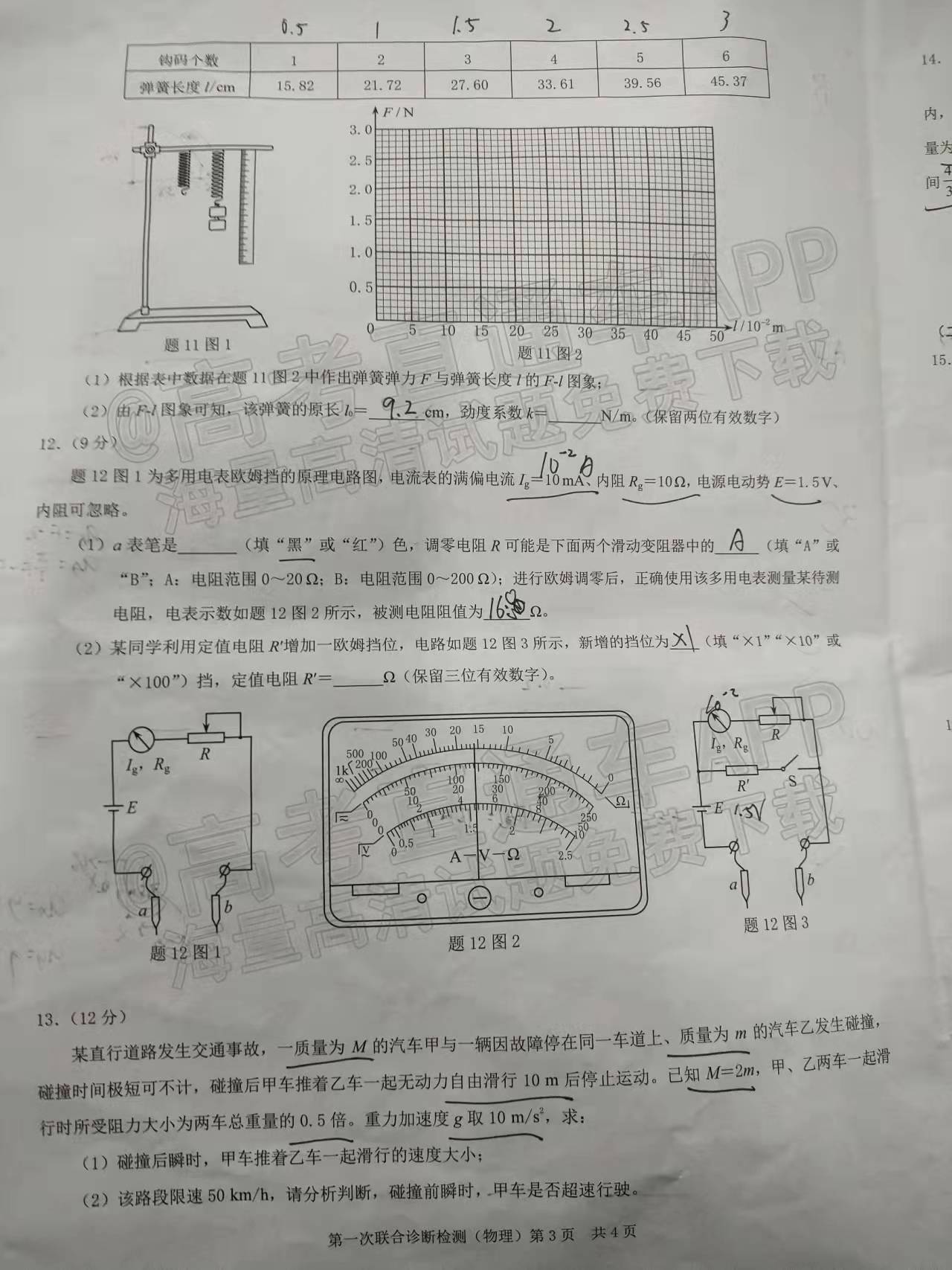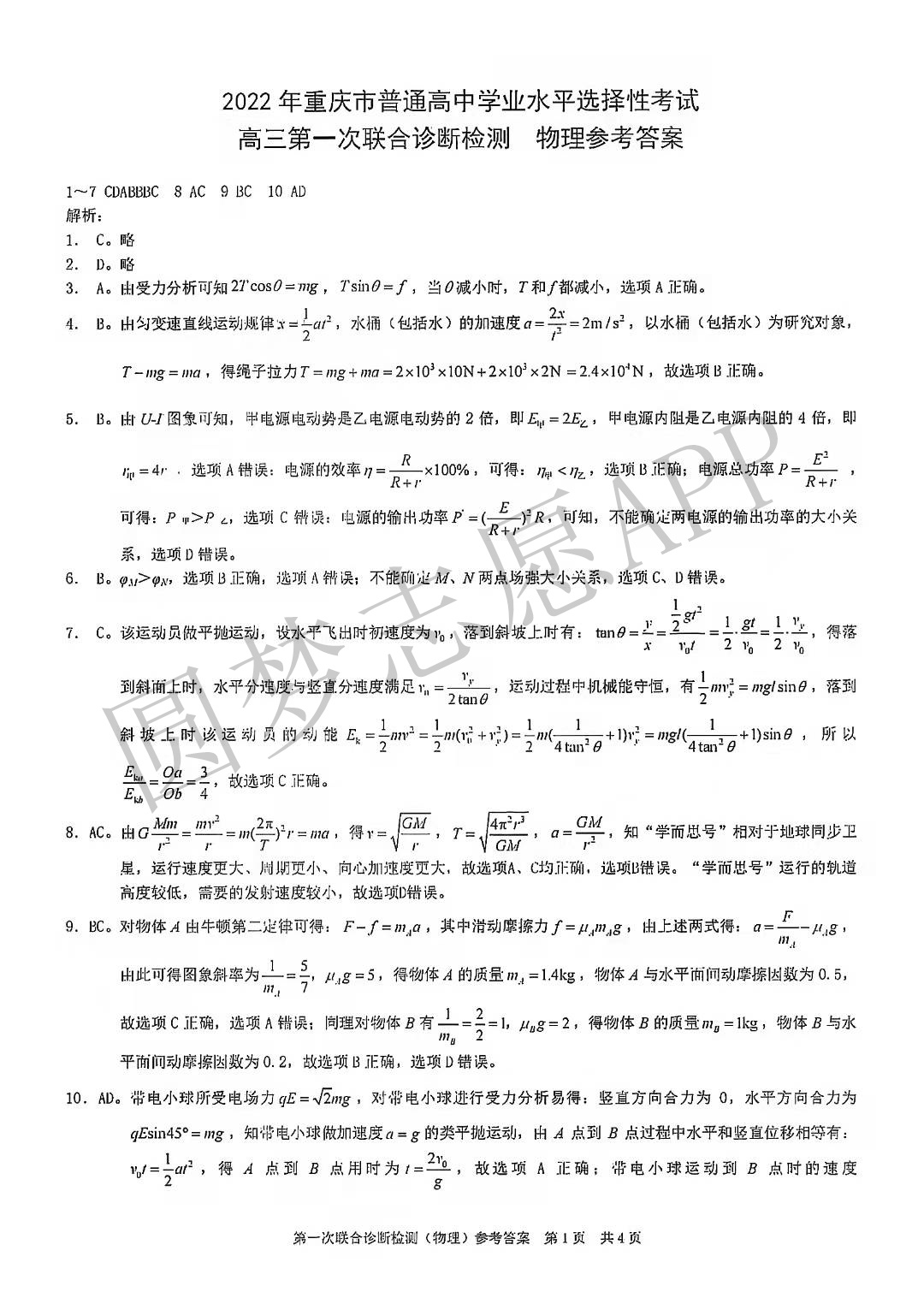 ④2022重庆康德卷一诊物理