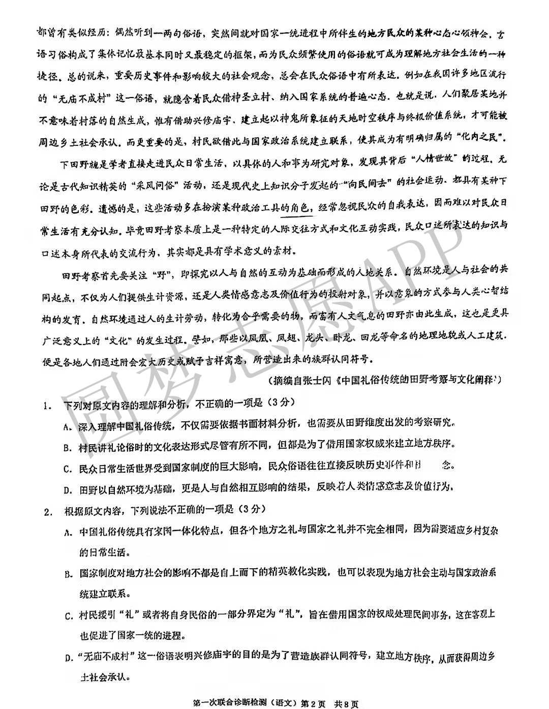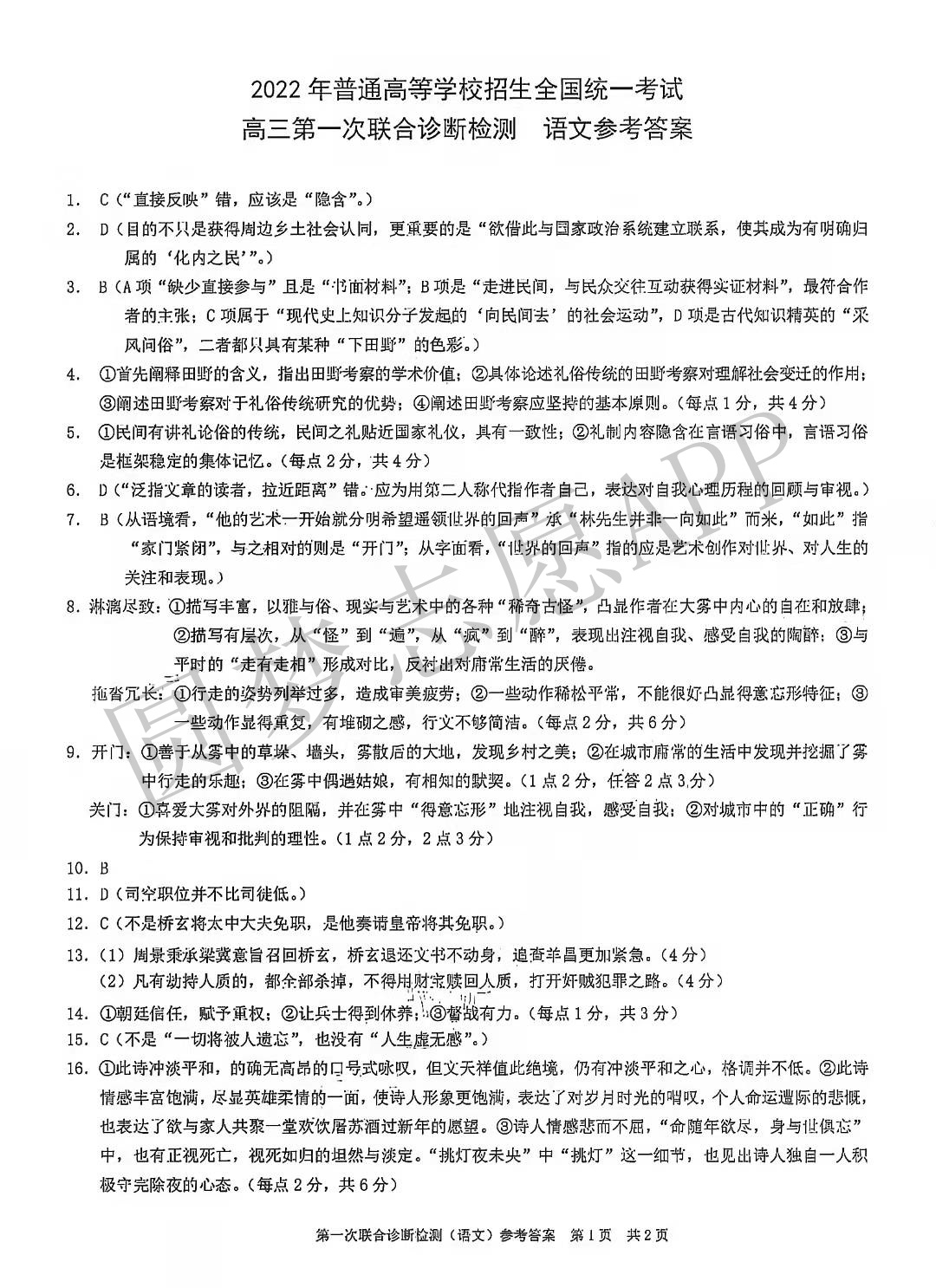 ①2022重庆康德卷一诊语文