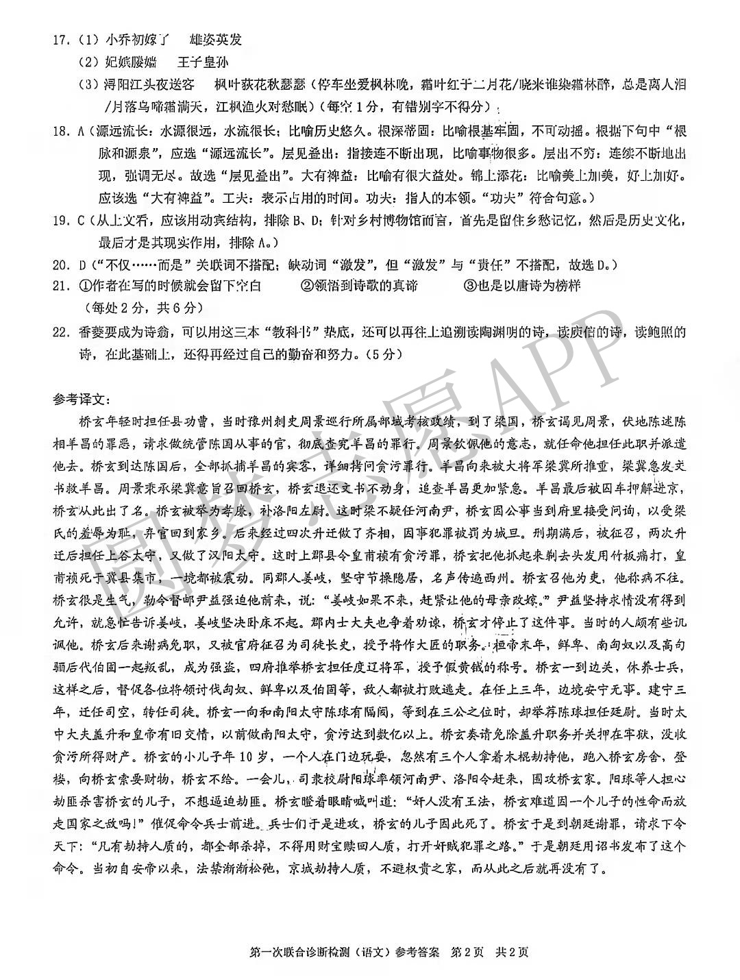 Ⅱ.语文答案