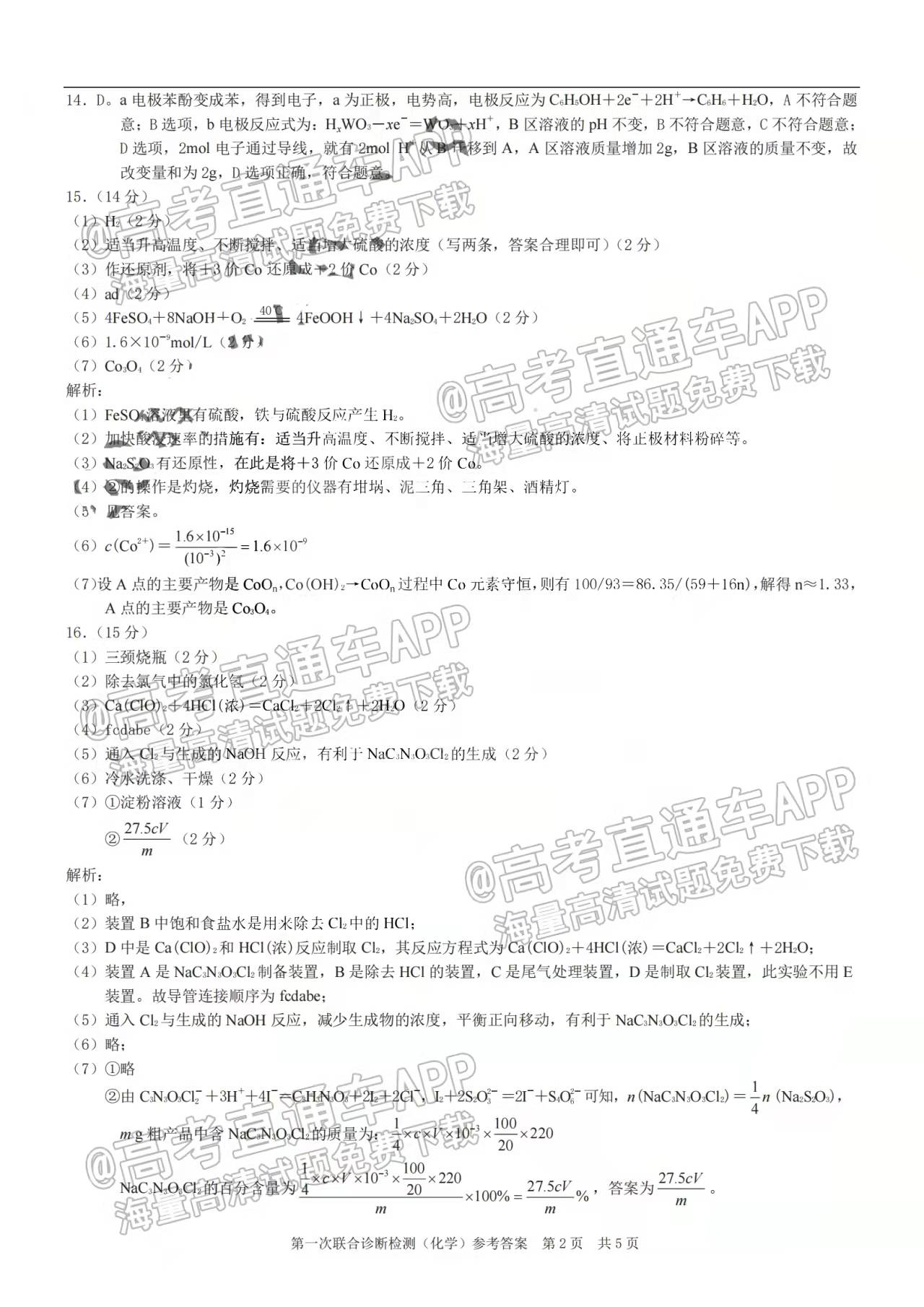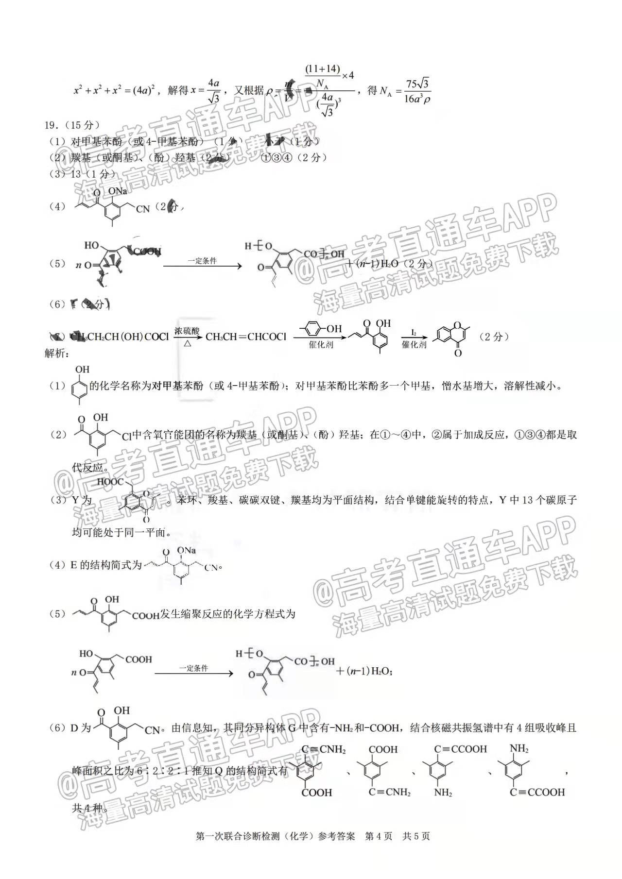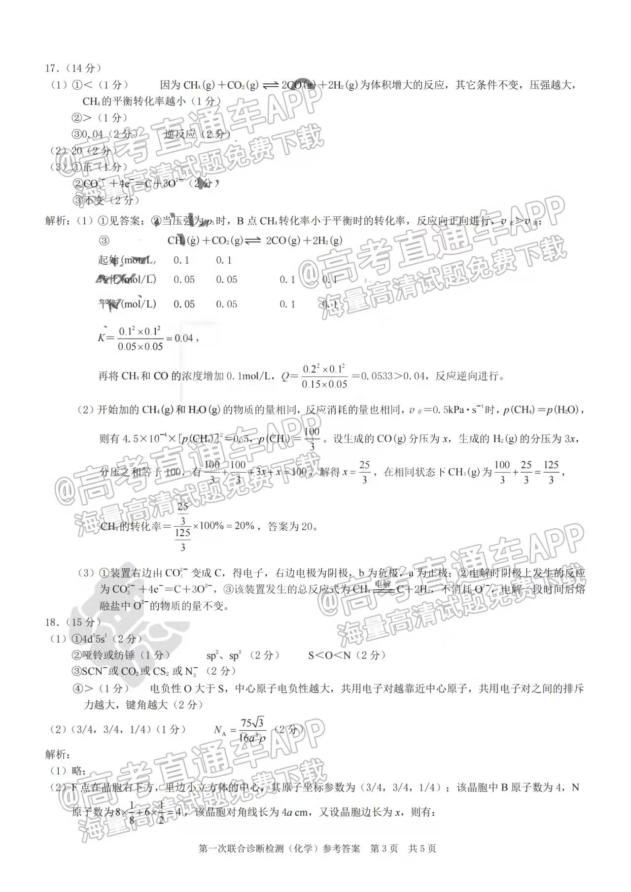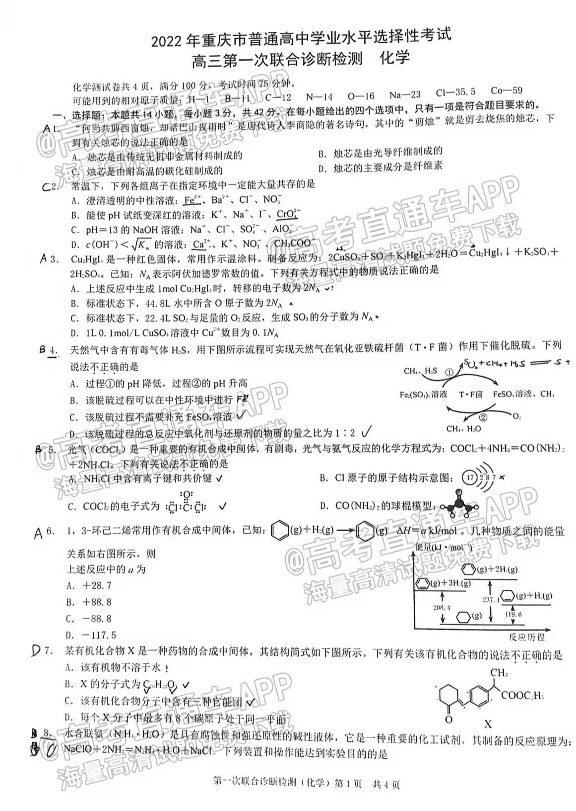 ⑤2022重庆康德卷一诊化学(待更新)