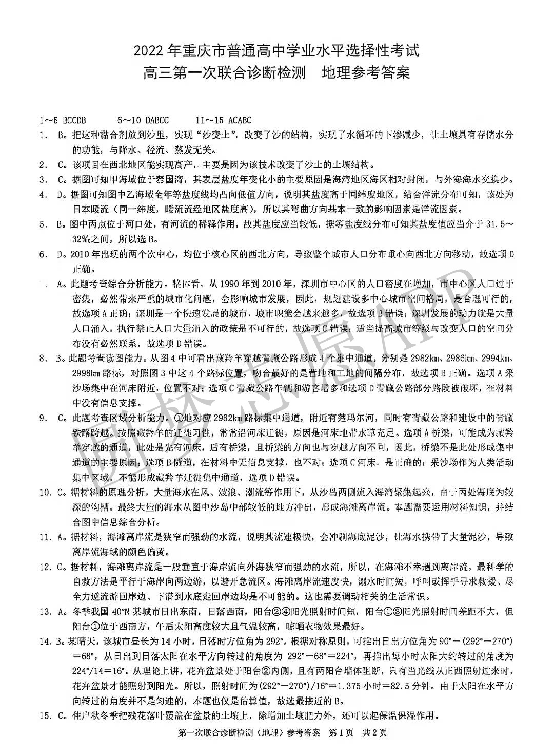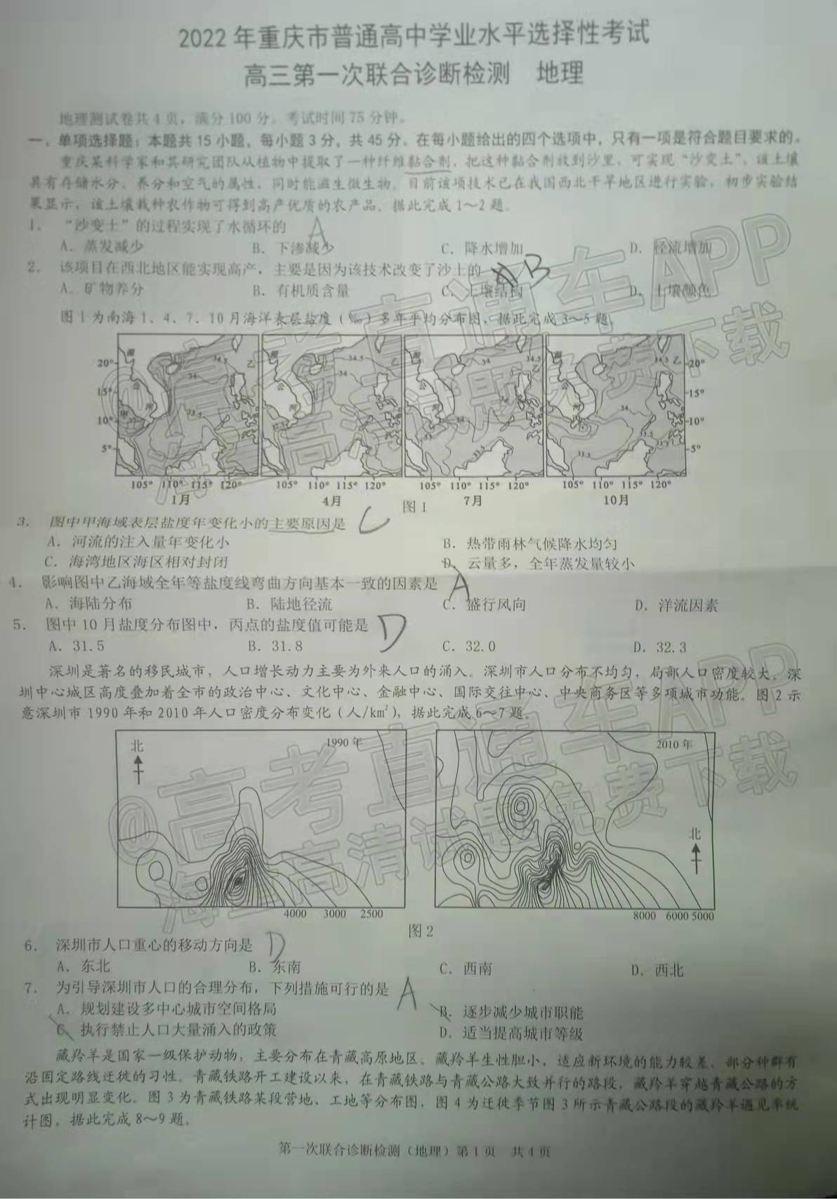 ⑨2022重庆康德卷一诊地理(待更新)