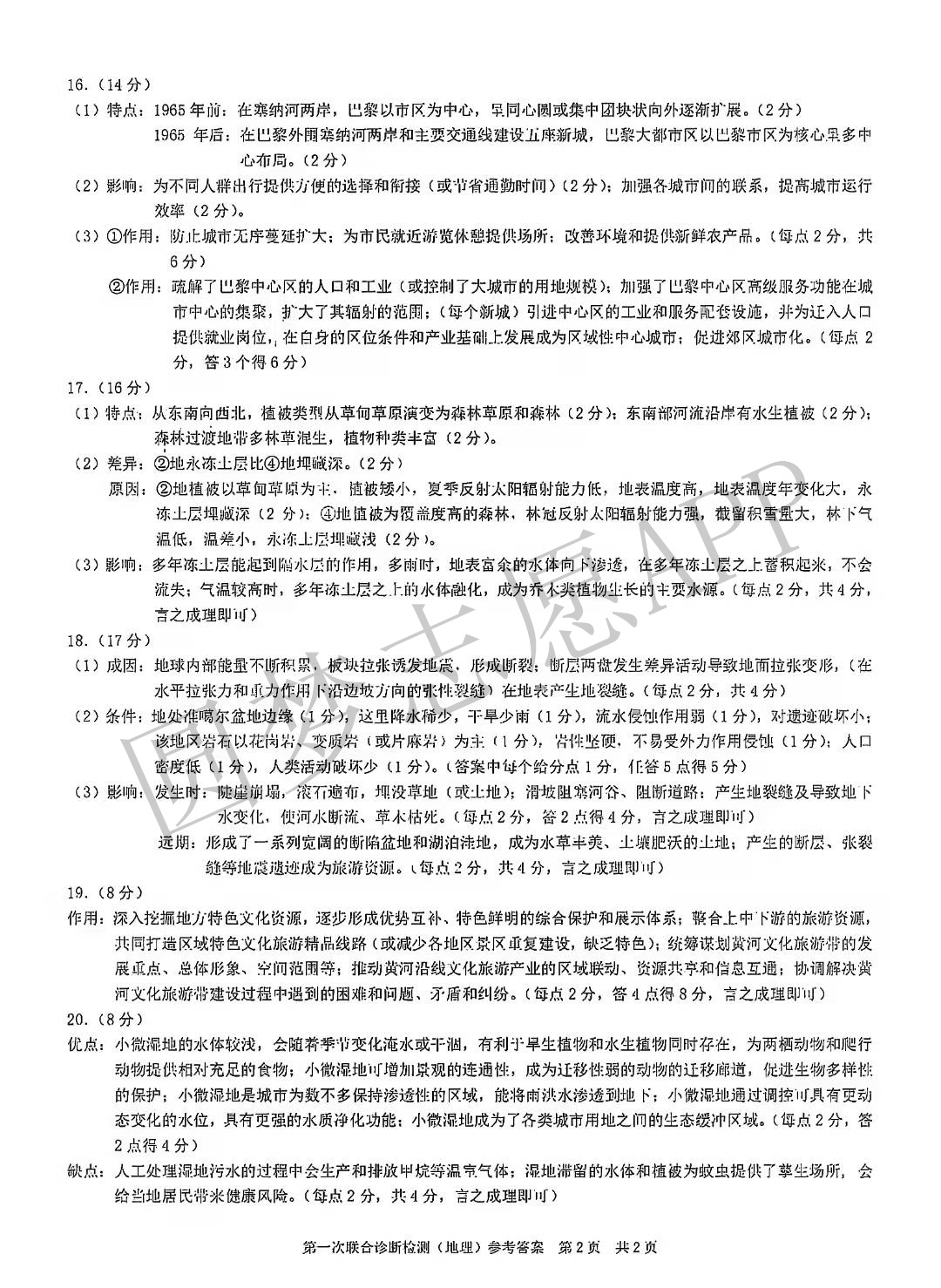 Ⅱ.地理答案