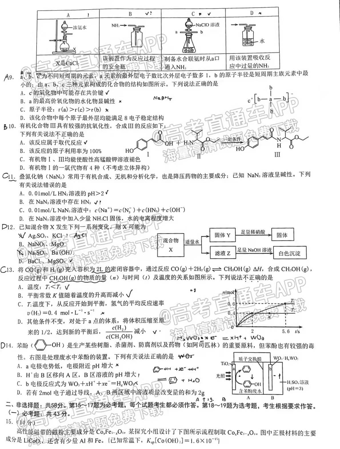 Ⅱ.化学答案