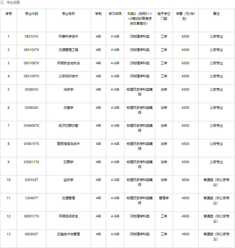 4.男女生招收比例:由于公安工作高负荷、高压力、高风险等特点和人民警察职业的特殊要求,公安专业女生计划不超过招生计划数的10%;其他专业男女比例不限,监狱学专业根据专业性质和就业要求,女生慎报。