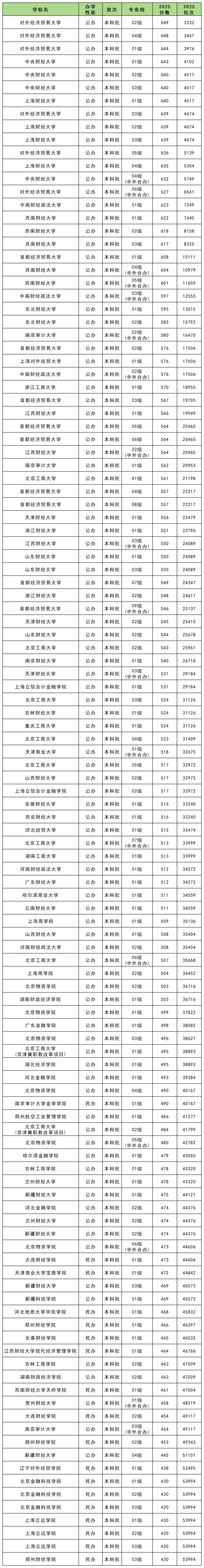 以北京为例,为大家展示了2025年全国所有财经大学录取分数线,供参考。