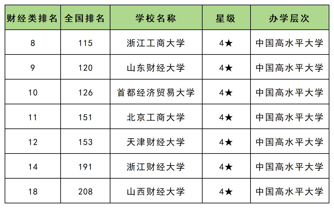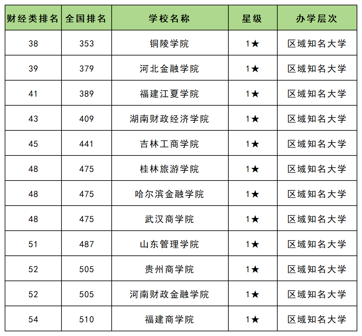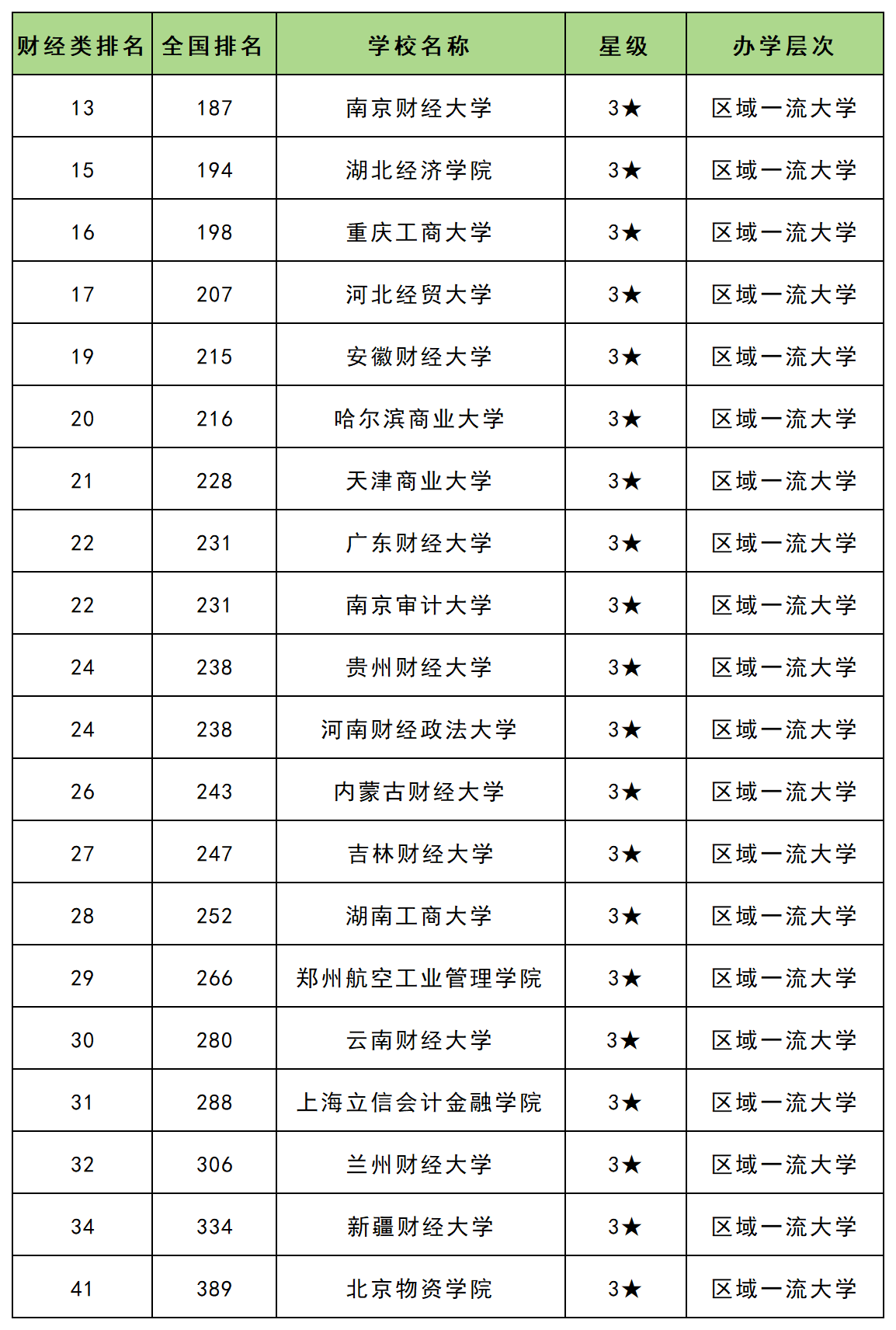 上文整理的是软科排名,如果按照校友会划分的办学层次来看的话,财经大学可以分为六个档次。