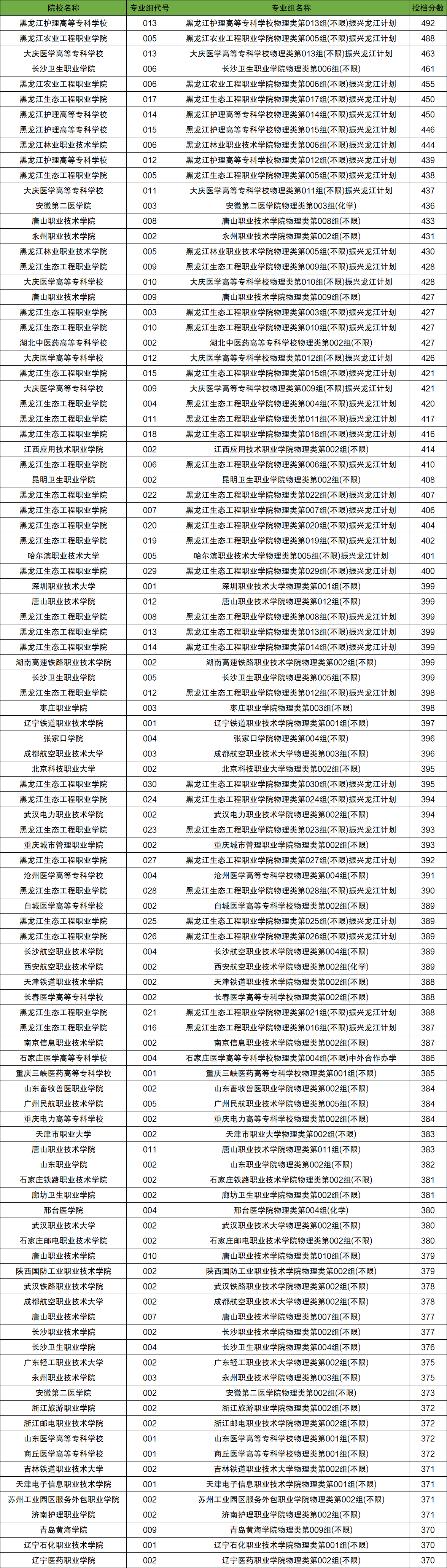 篇幅有限,仅展示2025年全国大学在黑龙江专科录取分数线排名前100强名单: