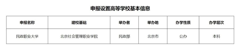 虽然学校是新设,但其实是以北京社会管理职业学院为基础建立的大学院校。学校属于民政部管理,位于北京,由于地理位置占据优势,因此在学校发展上也得到了极大的资源,而目前以学校为基础建立的新大学,也将围绕着民政行业和民生等服务领域发展,继续践行学校发展原则。