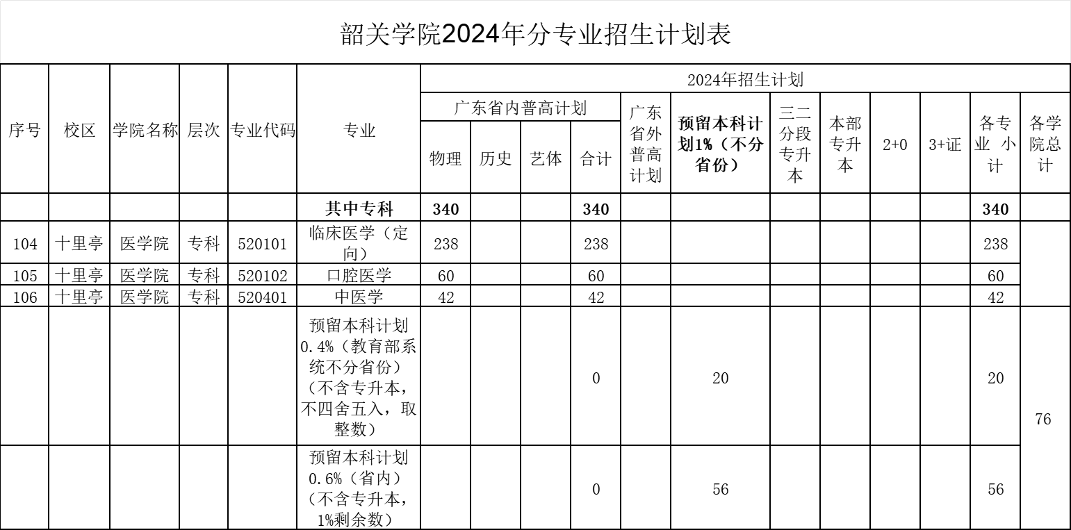 2024年韶关学院专科批招生专业有临床医学(定向)、口腔医学、中医学。