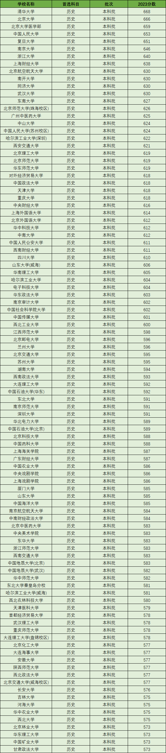 因文章篇幅有限,以下为大家整理了2023全国各大学在辽宁历史类录取分数前100的院校名单: