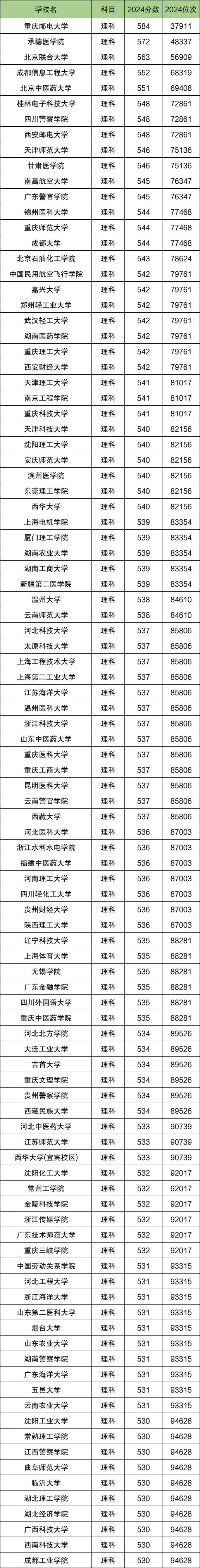 下表为全国二本公办大学在四川省理科的分数排名前100的学校。